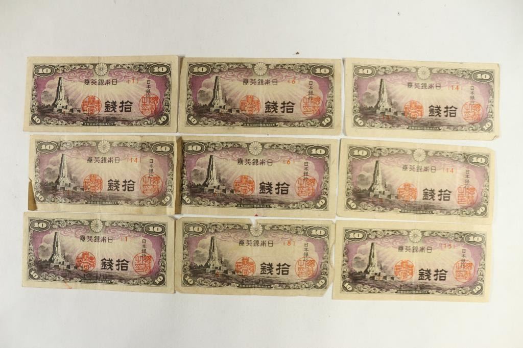 9- PIECES OF VINTAGE JAPANESE TEN YEN CURRENCY