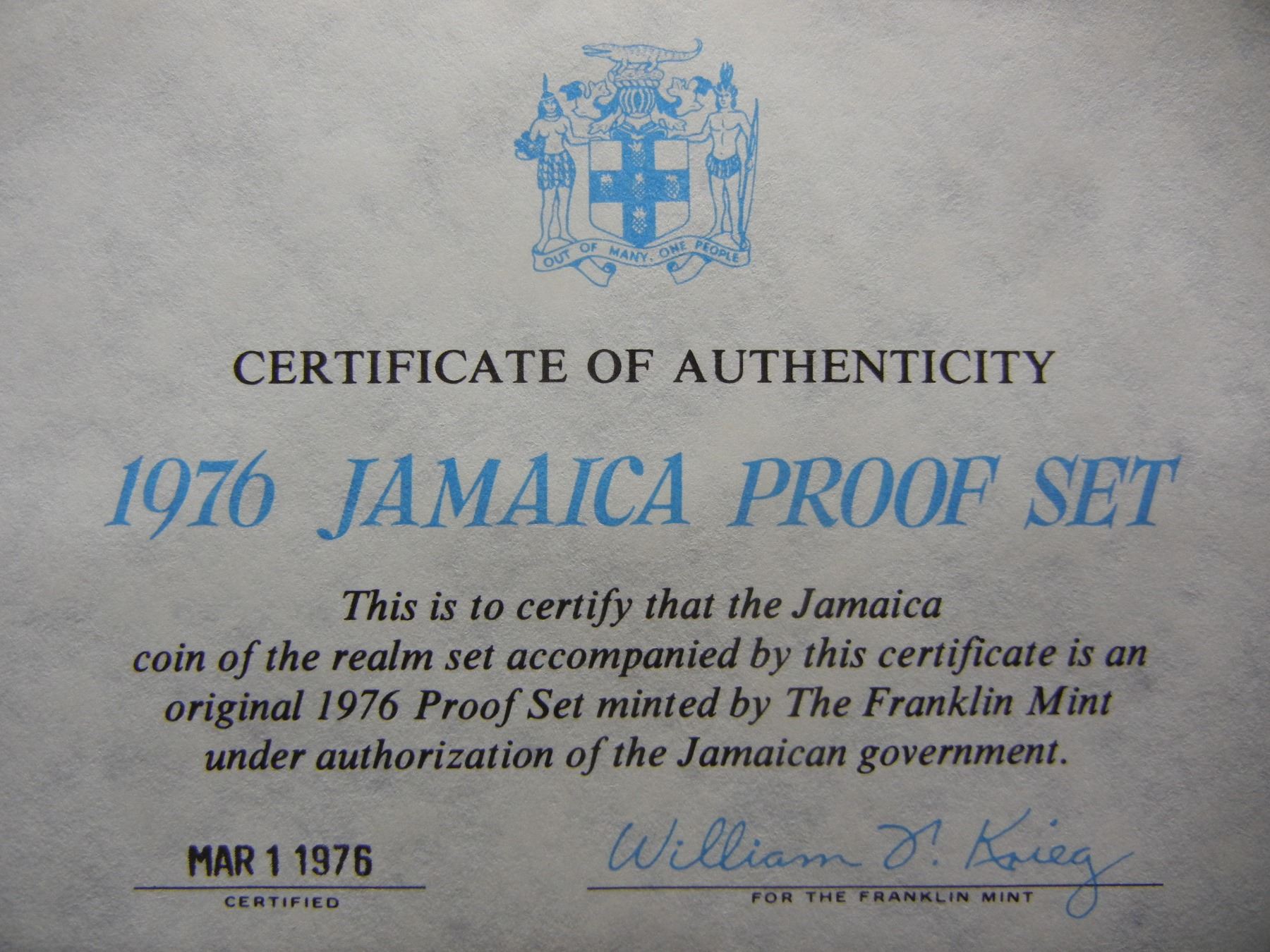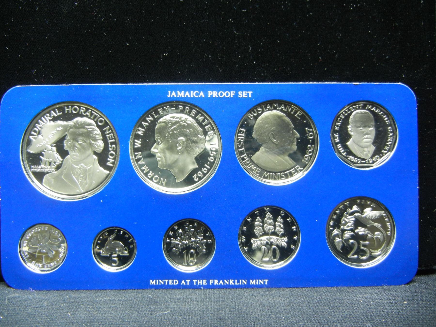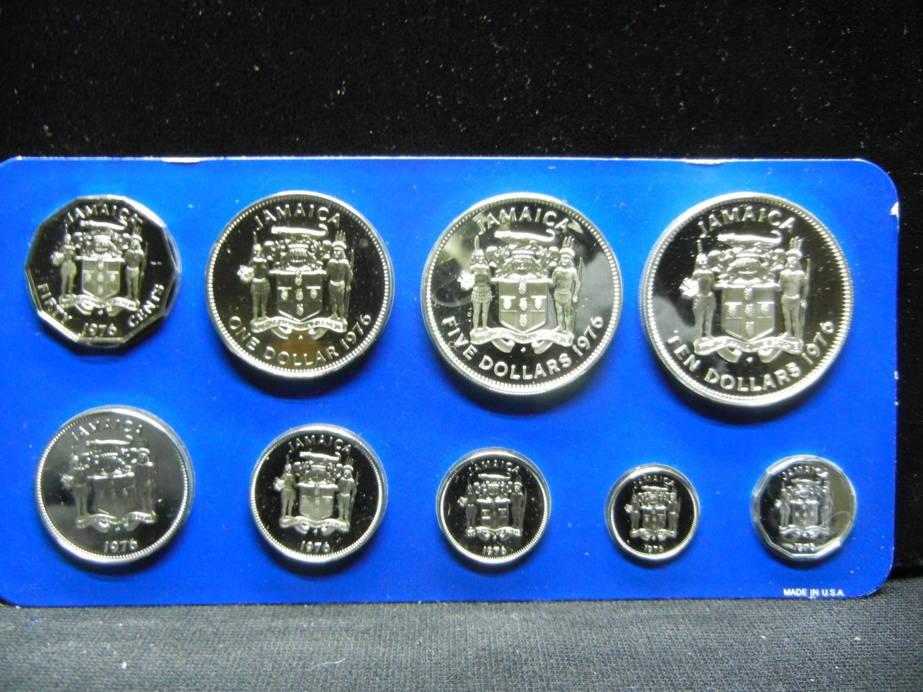 (9) Piece 1976 Jamaica Proof Set. $10 and $5 coins are silver (almost two ounces). Beautiful set i