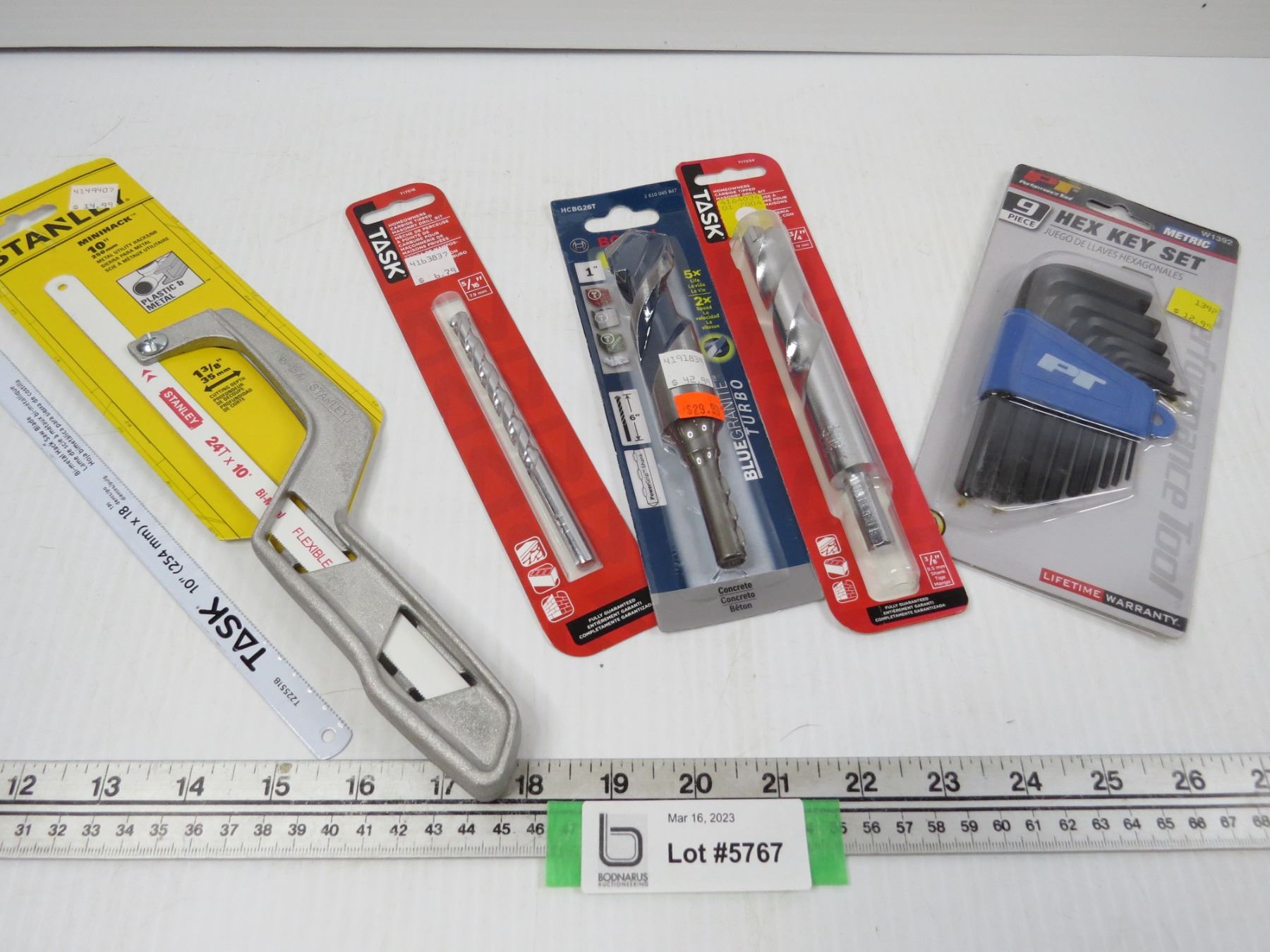 9 Piece Hex Key Set - Stanley Mini Hacksaw - (3) Carbide Tipped Drill Bits