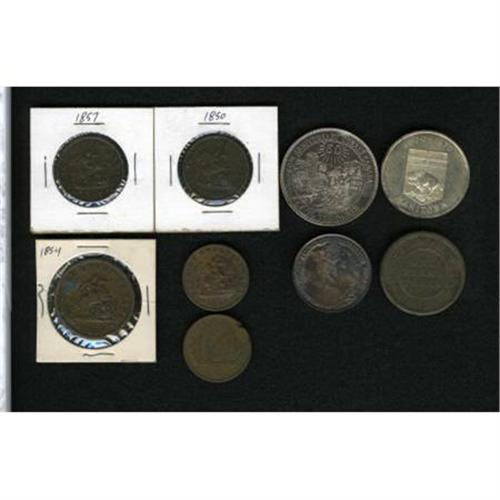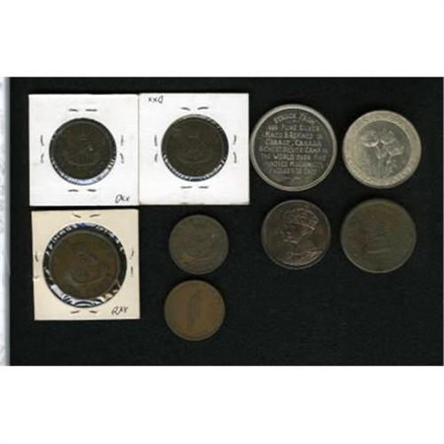 <B>Nine-Piece Lot of Canadian Breton Tokens & Medals.</B></I> Lot includes Breton tokens, a British token, and three silver Canadian medals.<BR><BR><b>Shipping:</b> Coins & Currency (<a target="_blank" href="http://www.heritageauctions.com/common/shipping.php">view shipping information</a>)