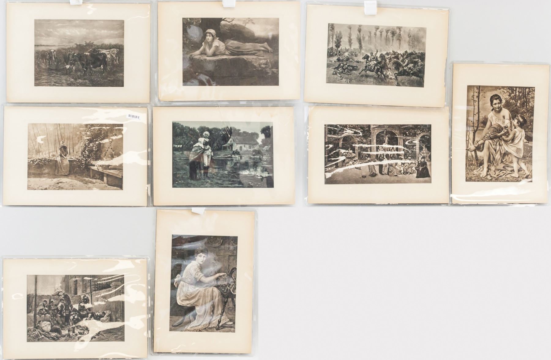 Nine (9) piece photogravures on rice paper in black and white. Of various subjects. 20 x 29 cm (8 x 11.5 inches), 20 x 43 cm (12 x 17 inches)