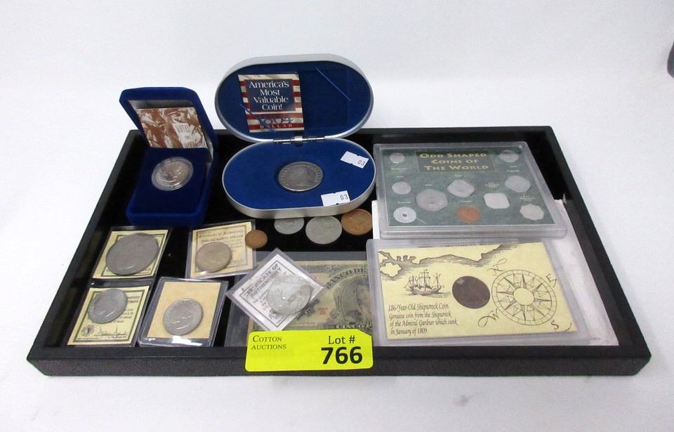 1804 Replica USA Dollar coin (stamped copy), Susan B Anthony $1 Coins, Admiral Gardner shipwreck coin, and more.