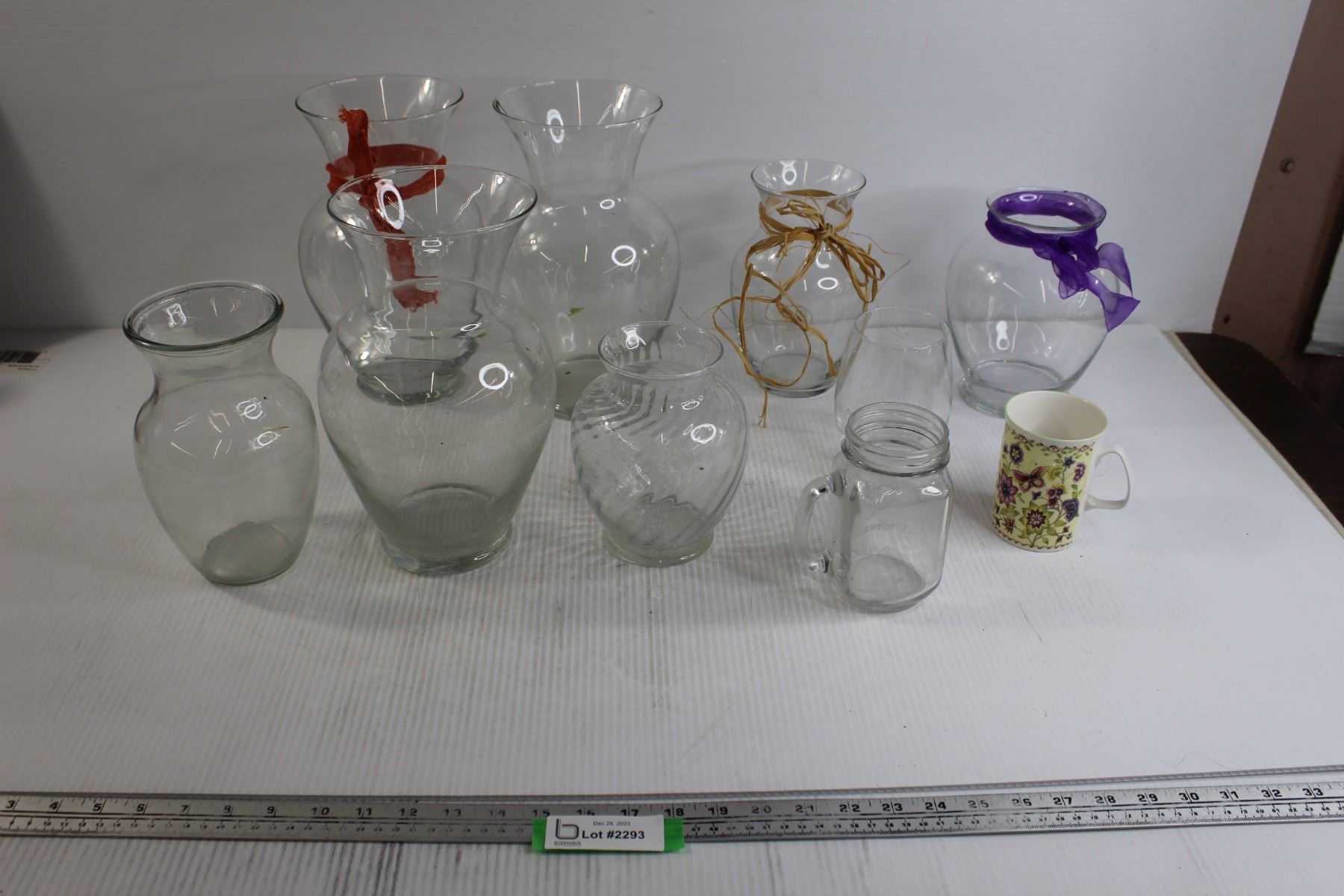 (9) Pieces of Glassware - Vases, etc.; Mug