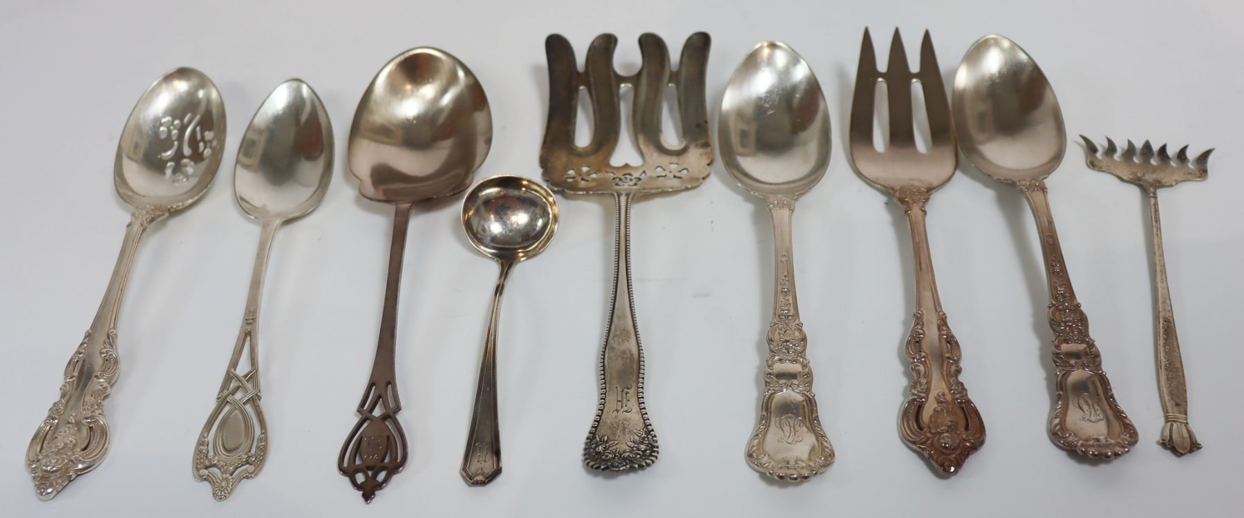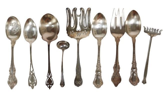 There is a total of 9 pieces in this group of mixed sterling silver ware.
