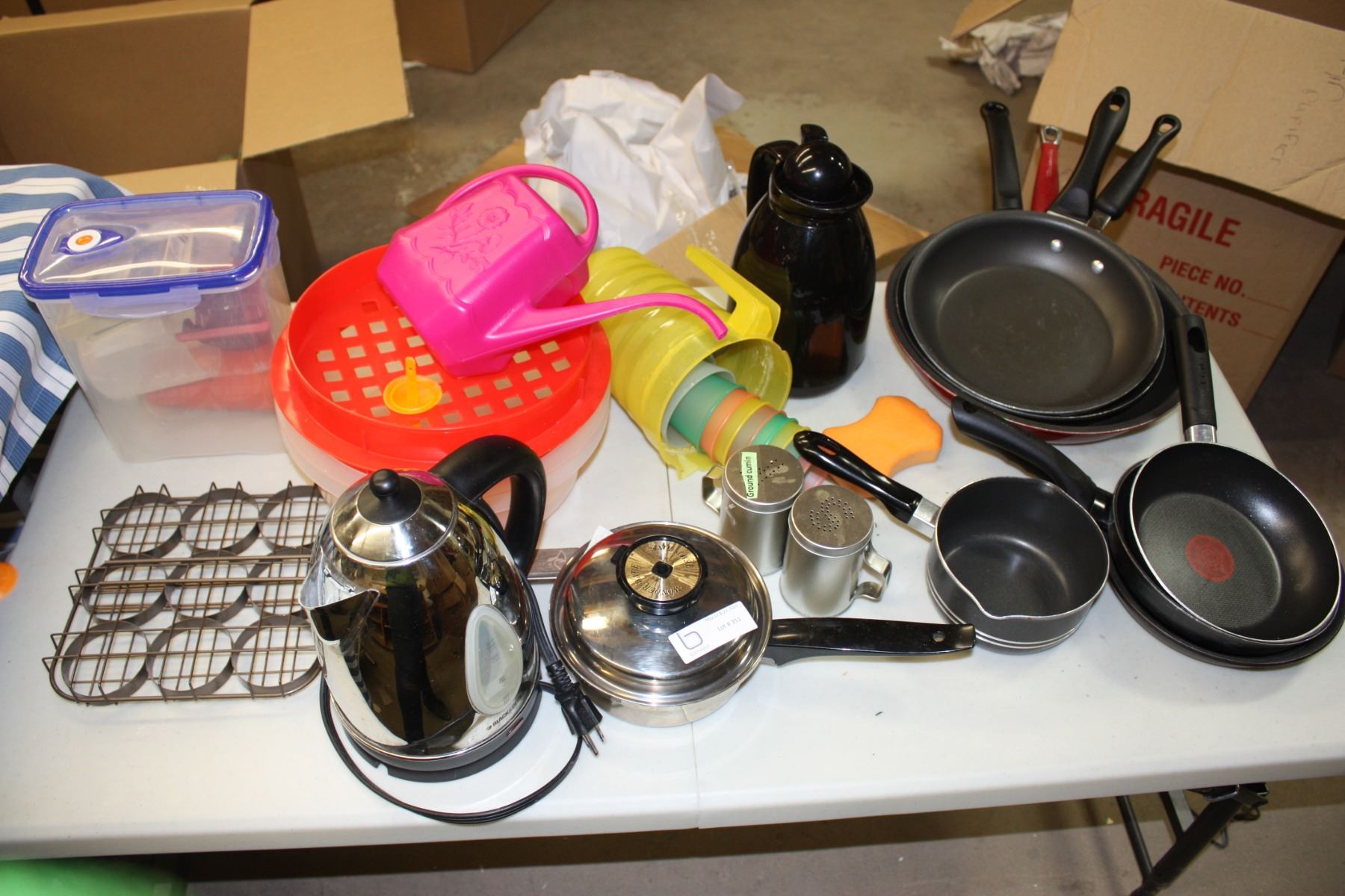 9 Pots and Pans, Kettle, Bun Toaster and misc.