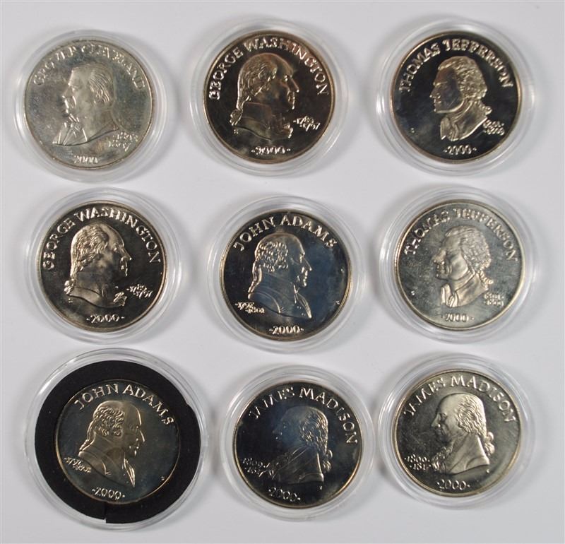 2 WASHINGTON, 2 ADAMS, 2 MADISON, 2 JEFFERSON, 1 CLEVELAND. EST 50.00-60.00