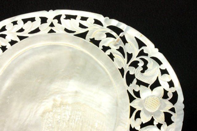 Floral design on border. Approx. 5 1/2" H x 7 1/2" W.