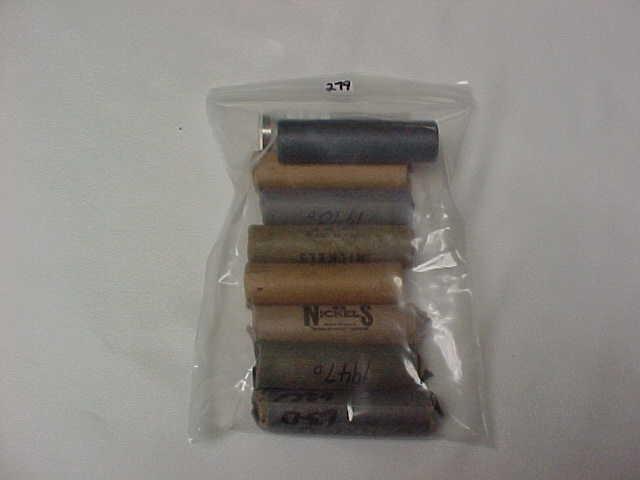 9 Rolls Jefferson Nickels: 8 Rolls marked Unc (1959D, 63, 2-63D, 64, 65, 66, 70D), 1 roll circ marked 1947D. Unsearched by us