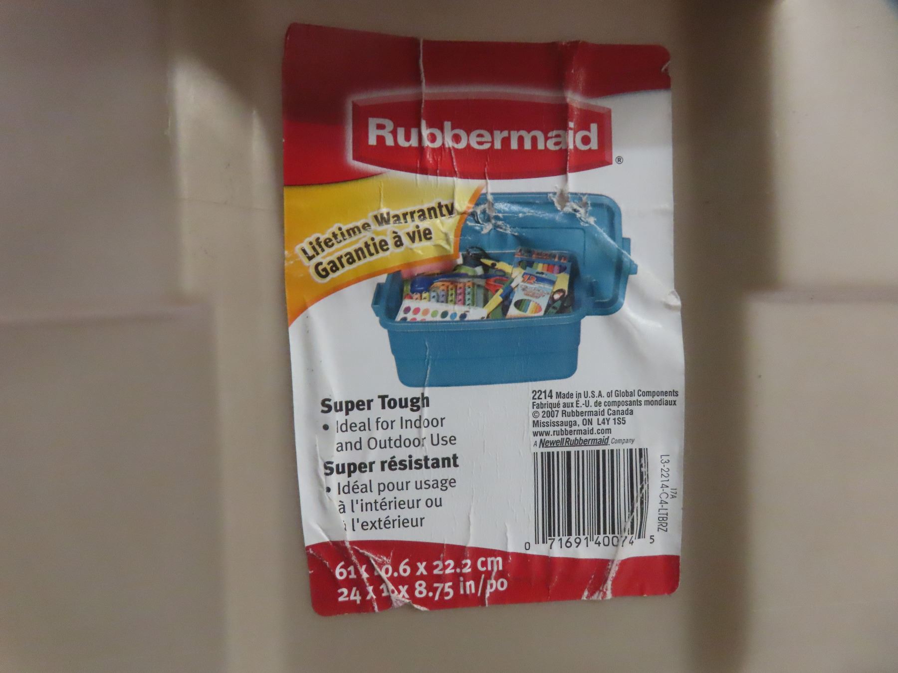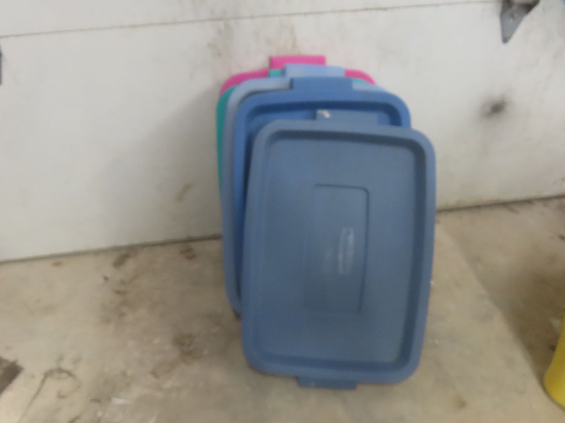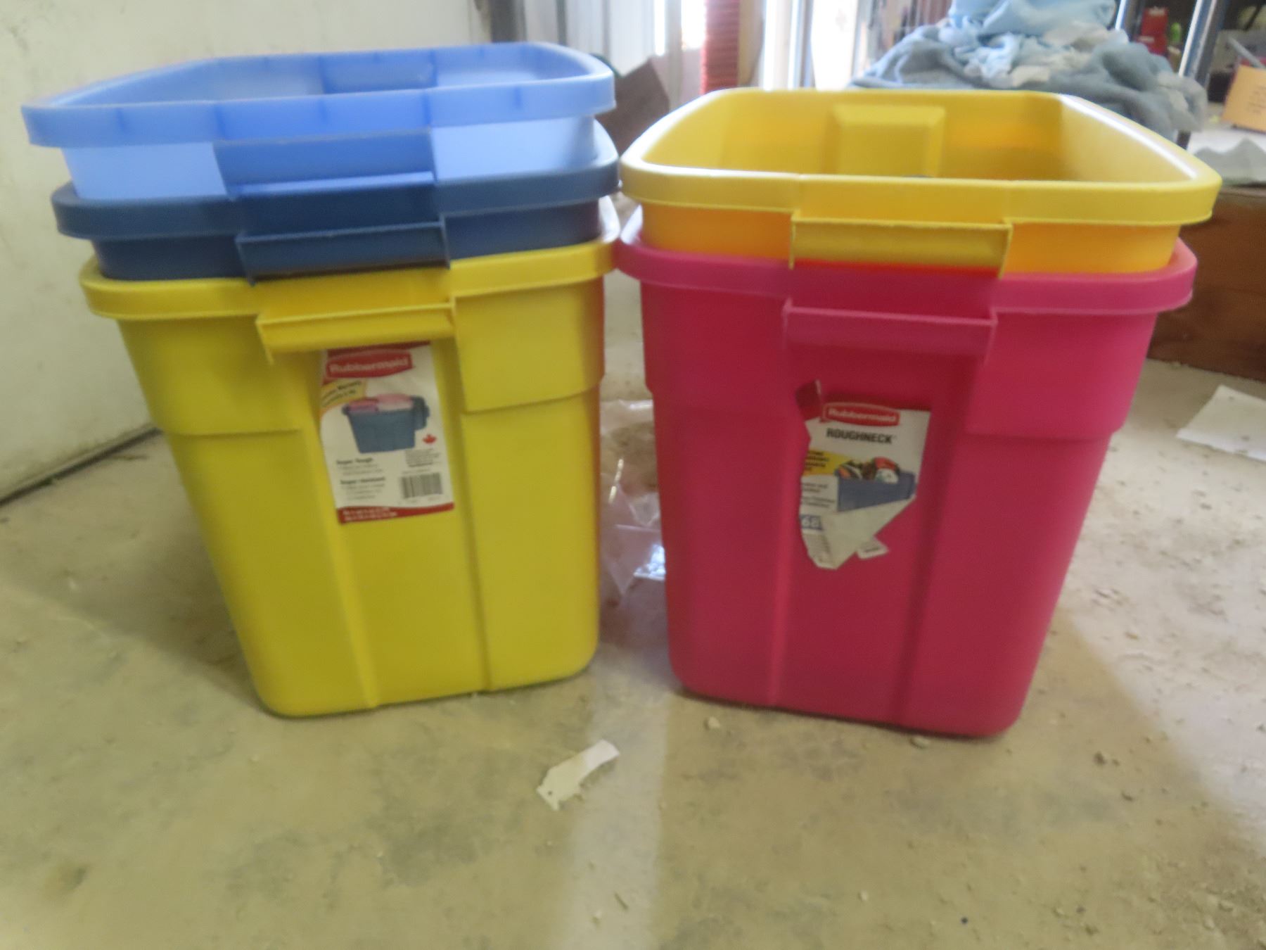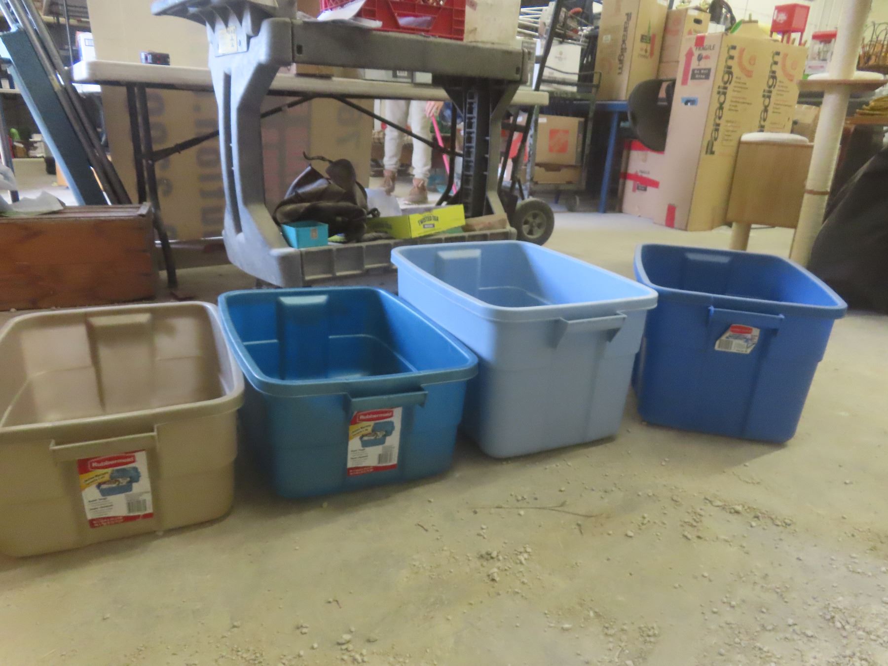 9 Rubbermaid Plastic Totes in Assorted Sizes