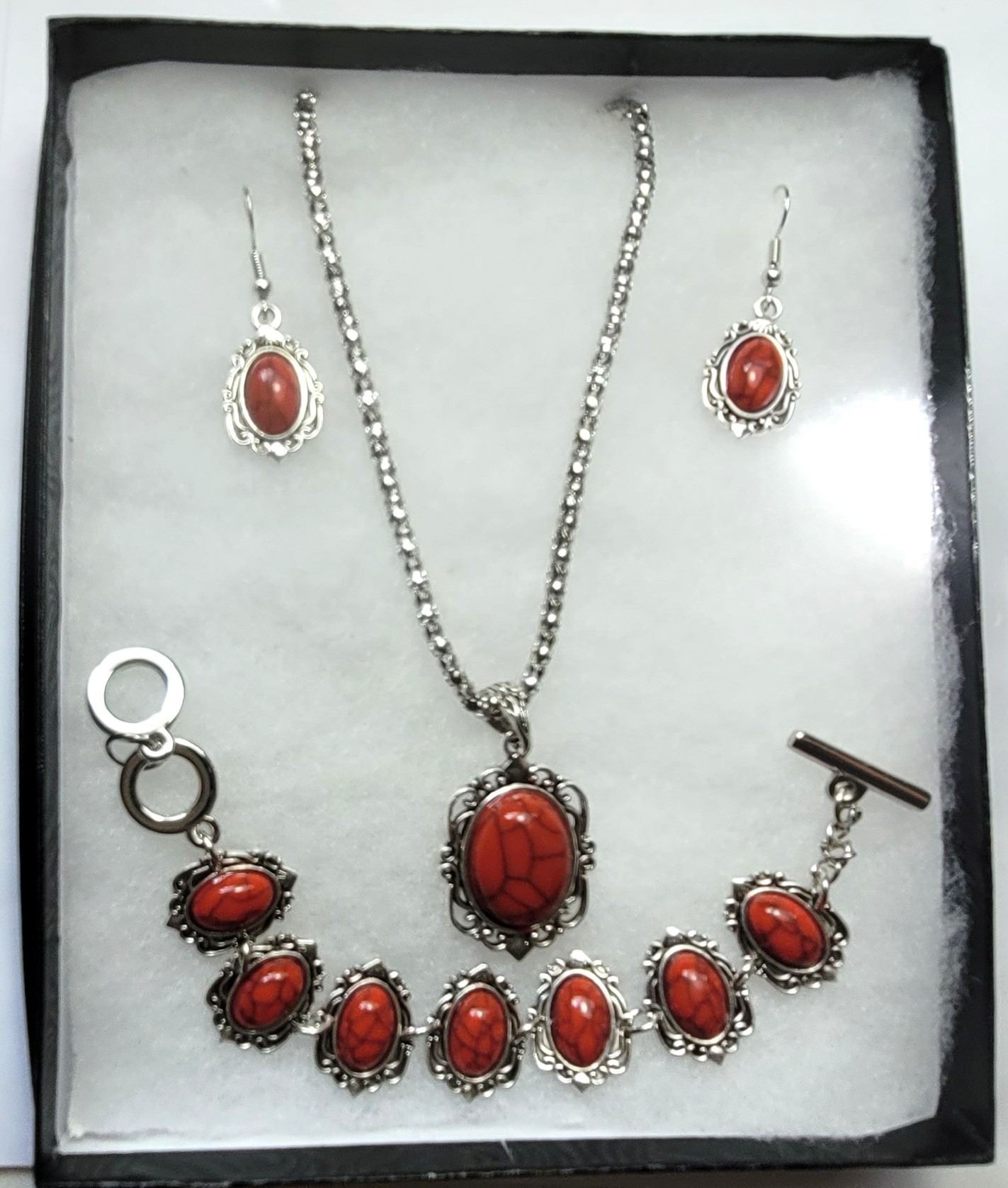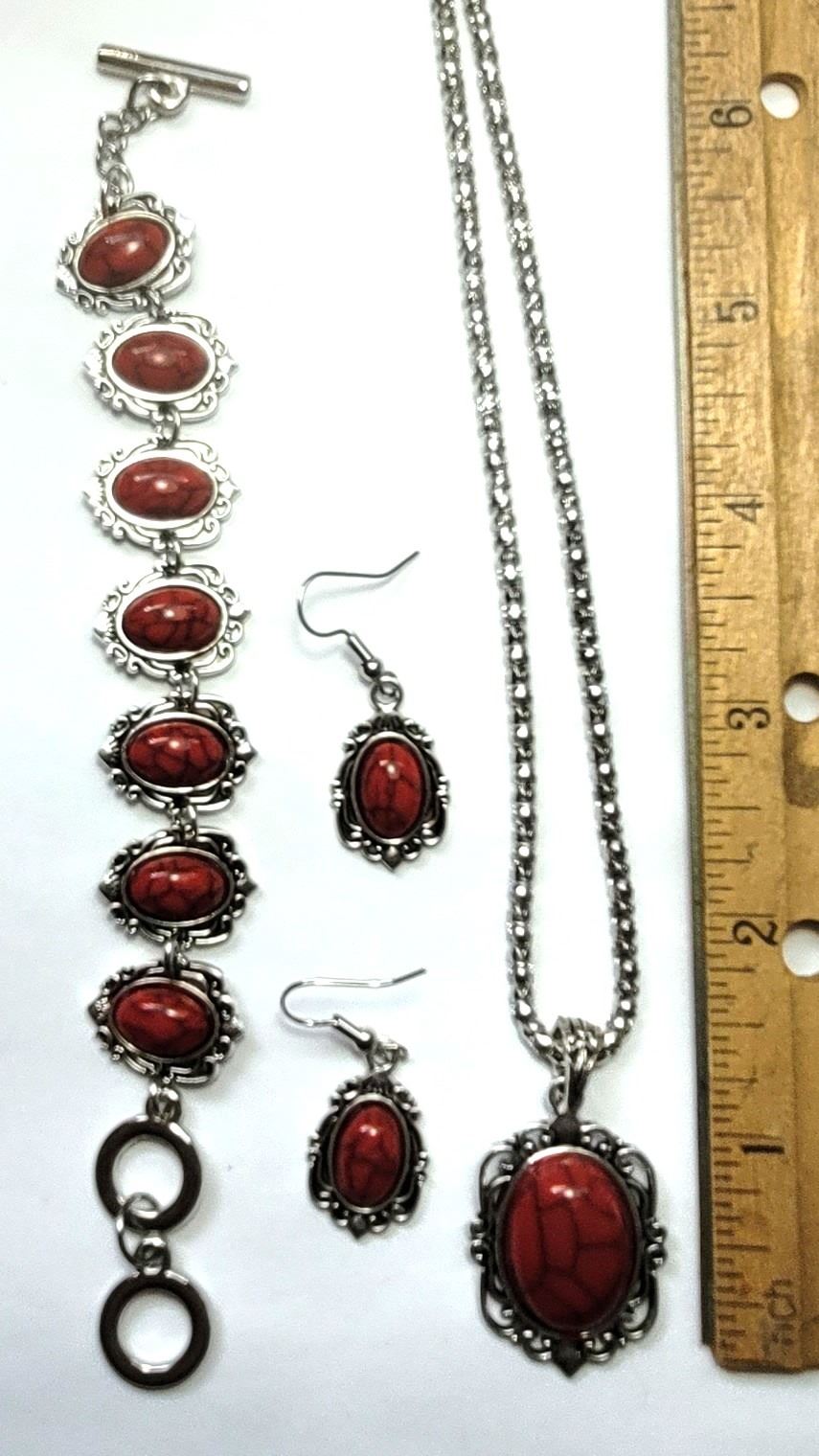 TURQUOISE DROP EARRINGS, BRACELET WITH ADJUSTABLE TOGGLE BRACELET AND PENDANT ON 22" CHAIN. JEWELERY