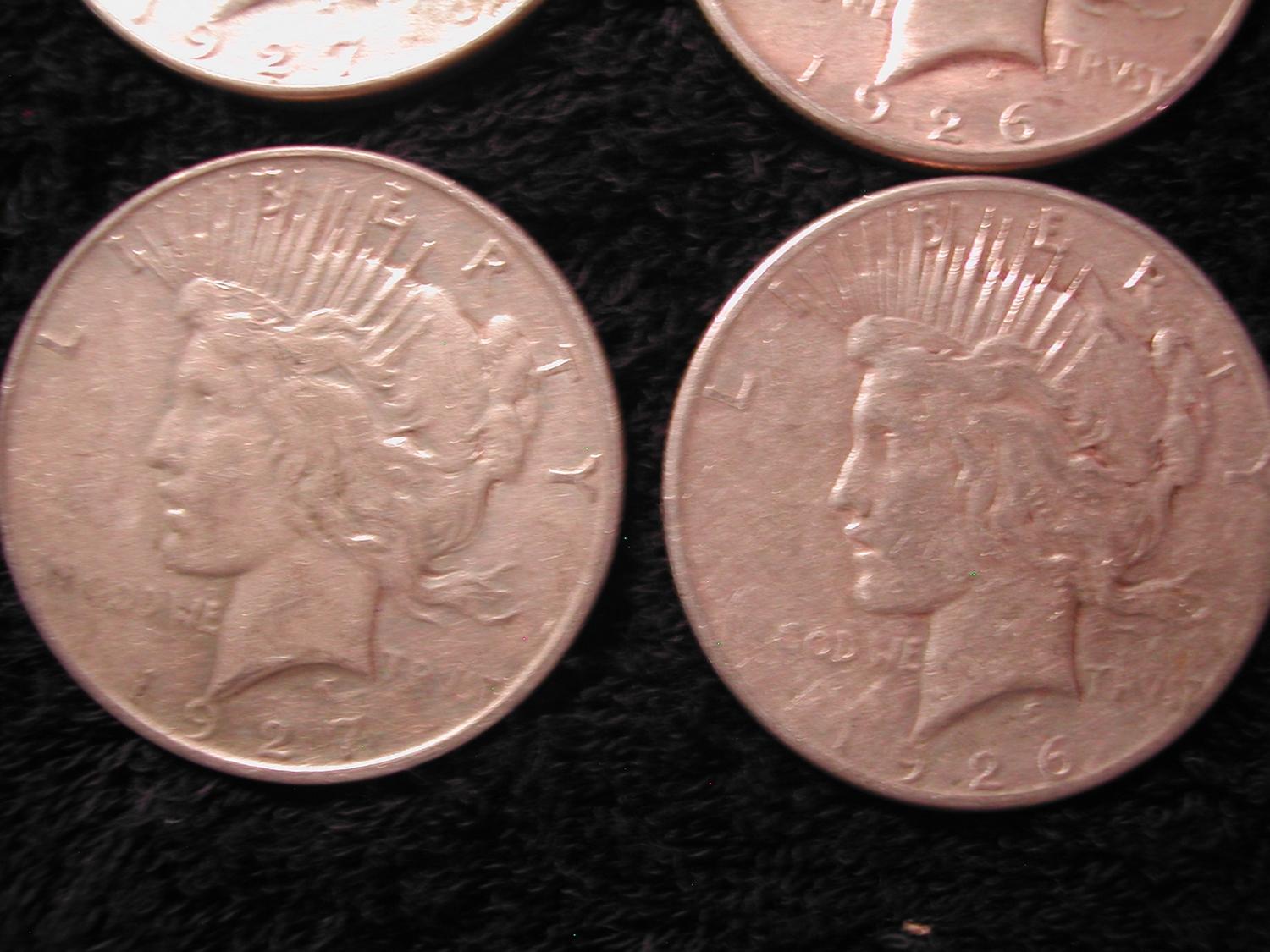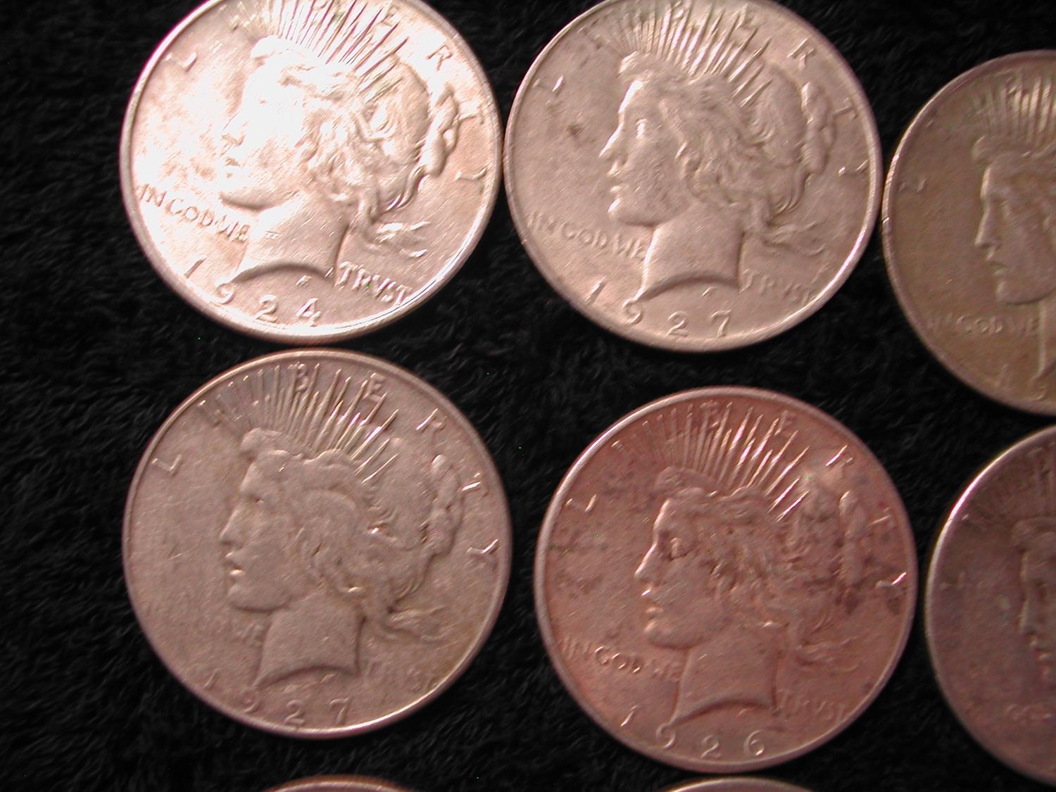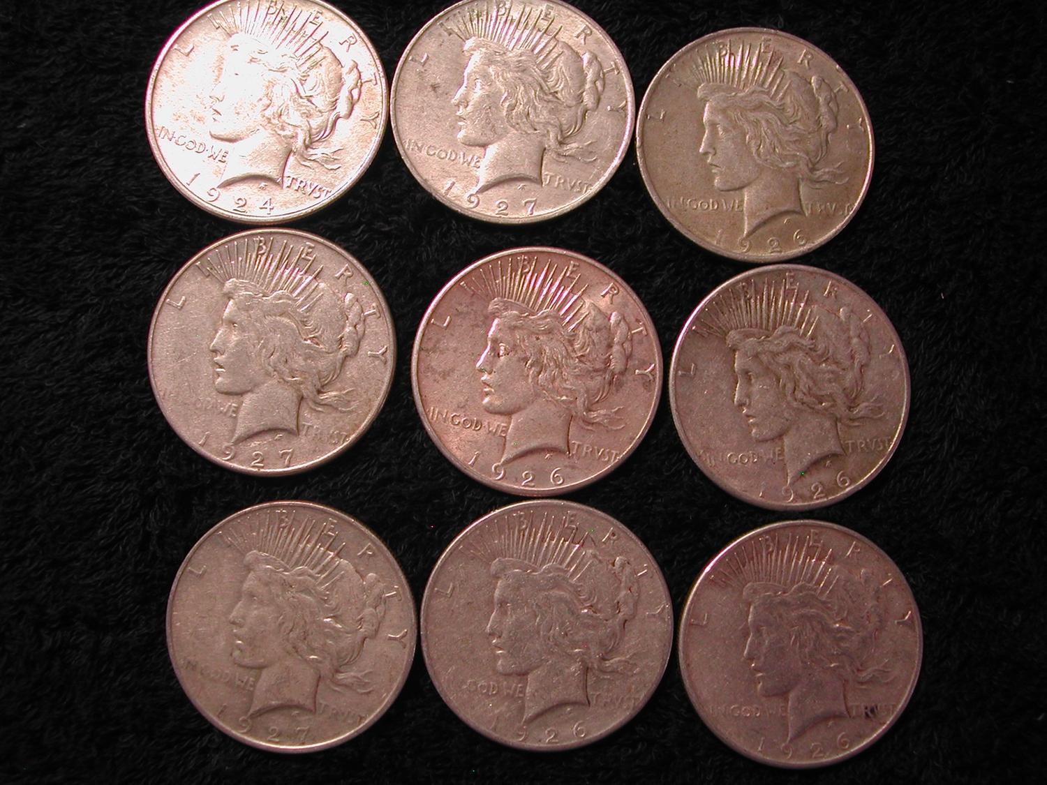 9 SILVER PEACE DOLLARS-1924, 5-1925, 3-1927