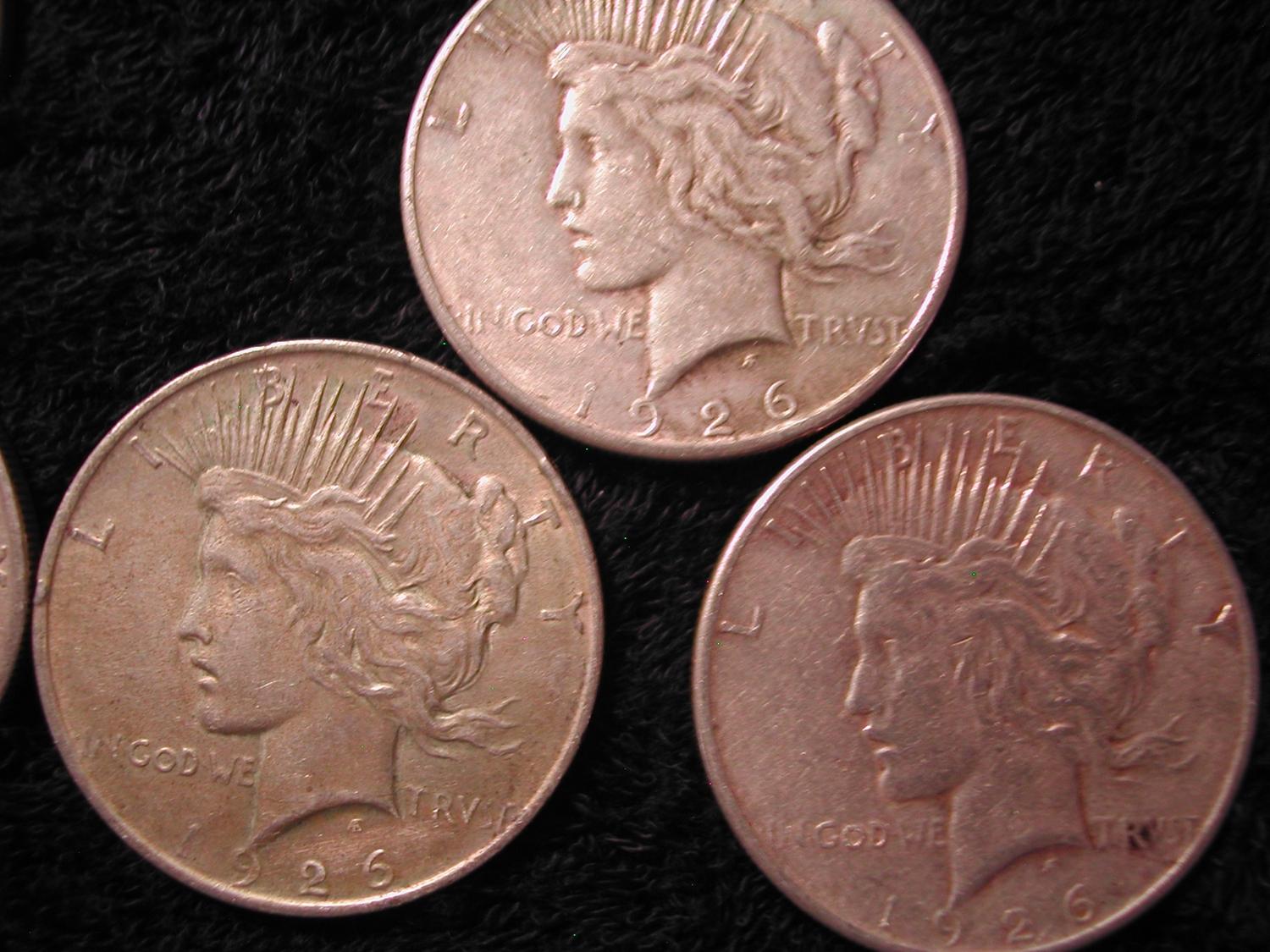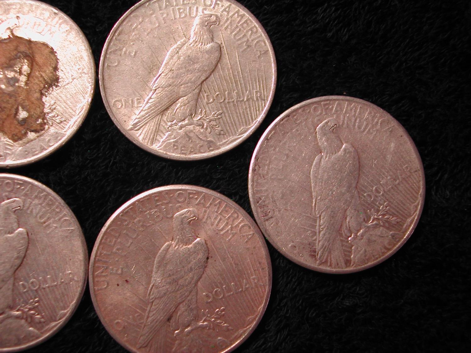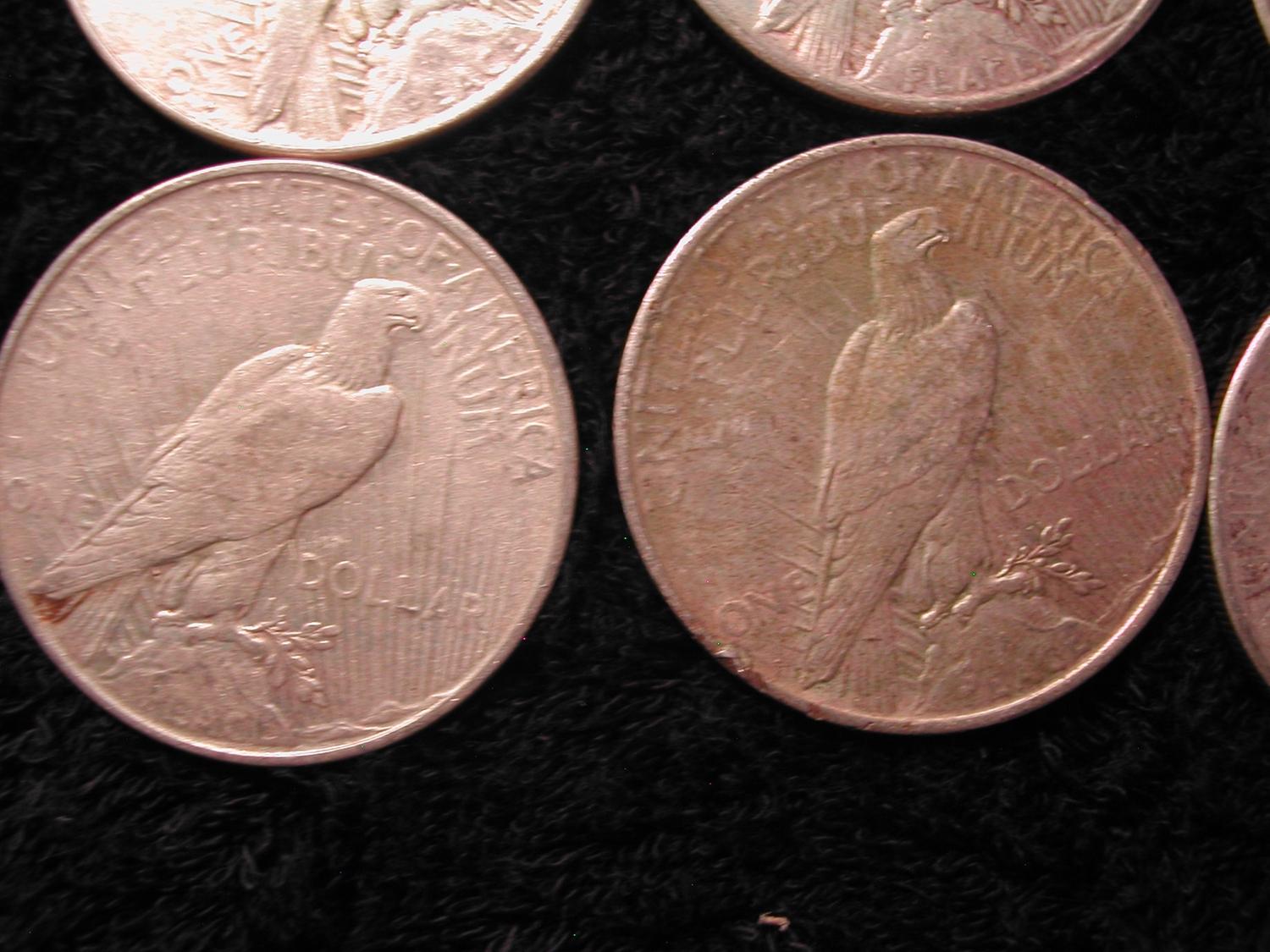 9 SILVER PEACE DOLLARS-1924, 5-1925, 3-1927
