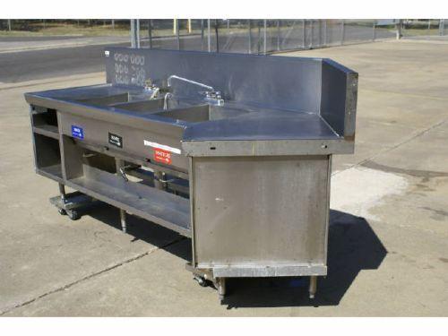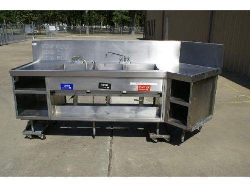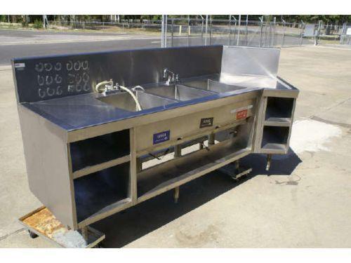 9' Stainless Steel 3-tub Sink enclosed w/ undershelving - used . Tubs 16" x 20" x 12" deep