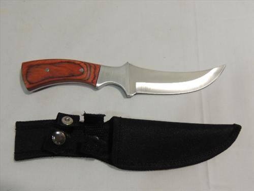 9" STEEL & ROSE WOOD HANDLE KNIFE & CASE. AS SHOWN. VIEW PICTURE FOR DETAIL.