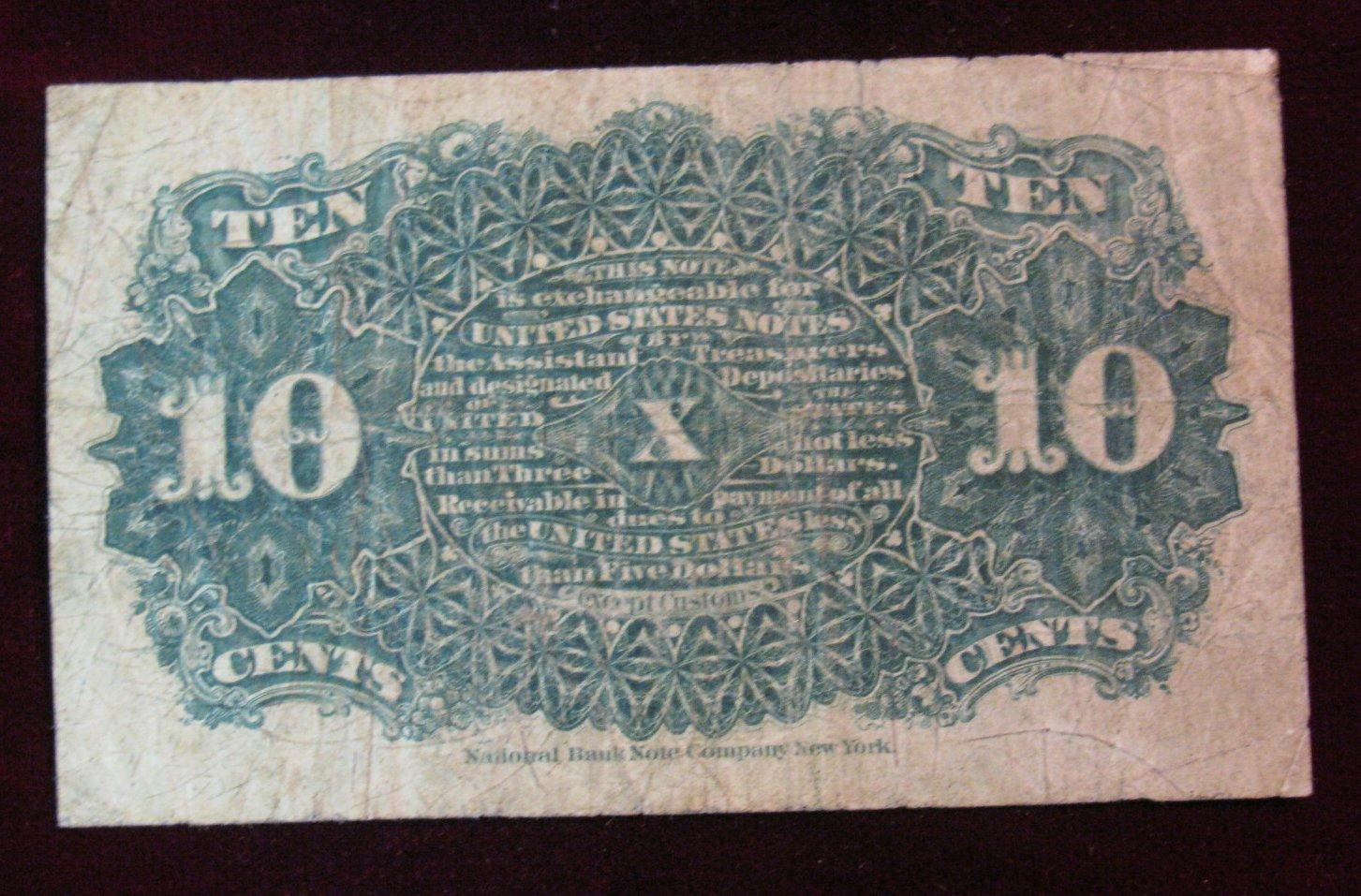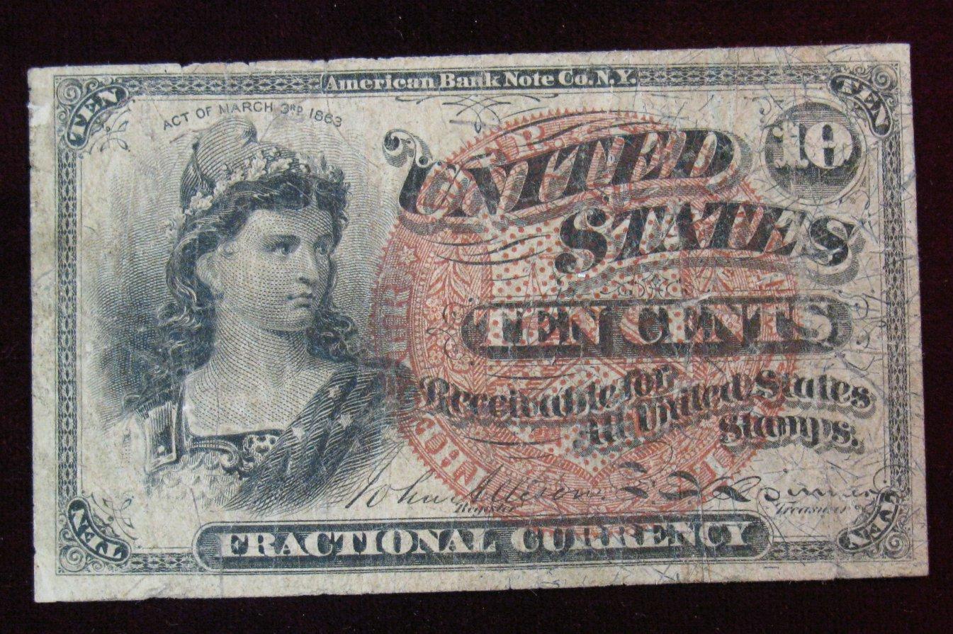 9. Series of 1863 Ten Cent Fractional Currency Note. F.