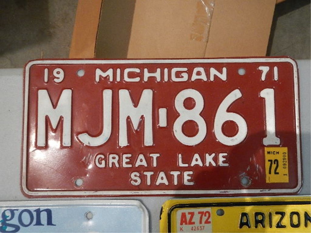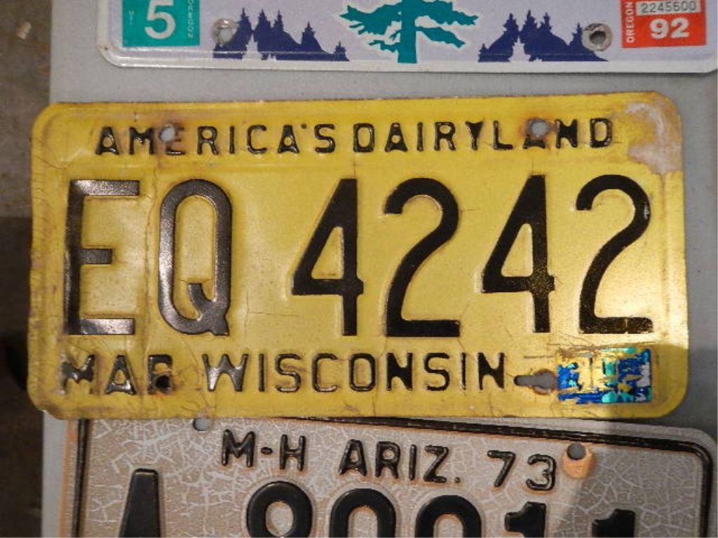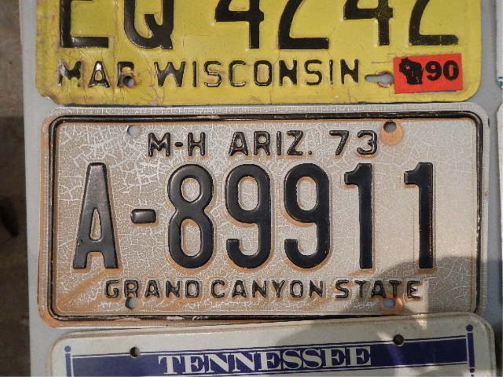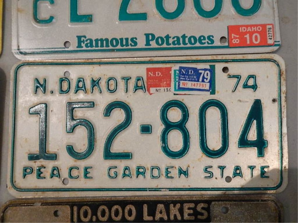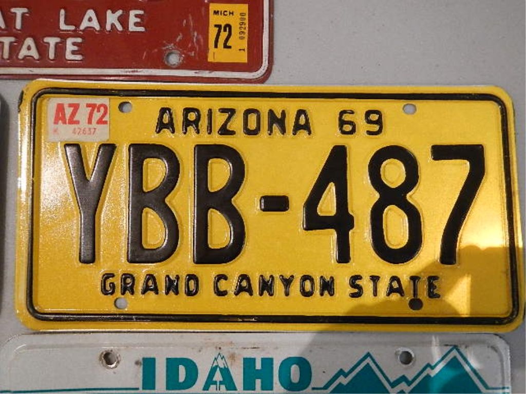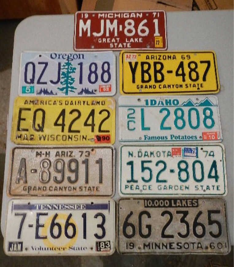 9 State License Plates Michigan 72, Oregon 92, Arizona 69, Idaho 87, Wisconsin 80, Arizona 73, Tennessee 83, N. Dakota 74, Minnesota 60,