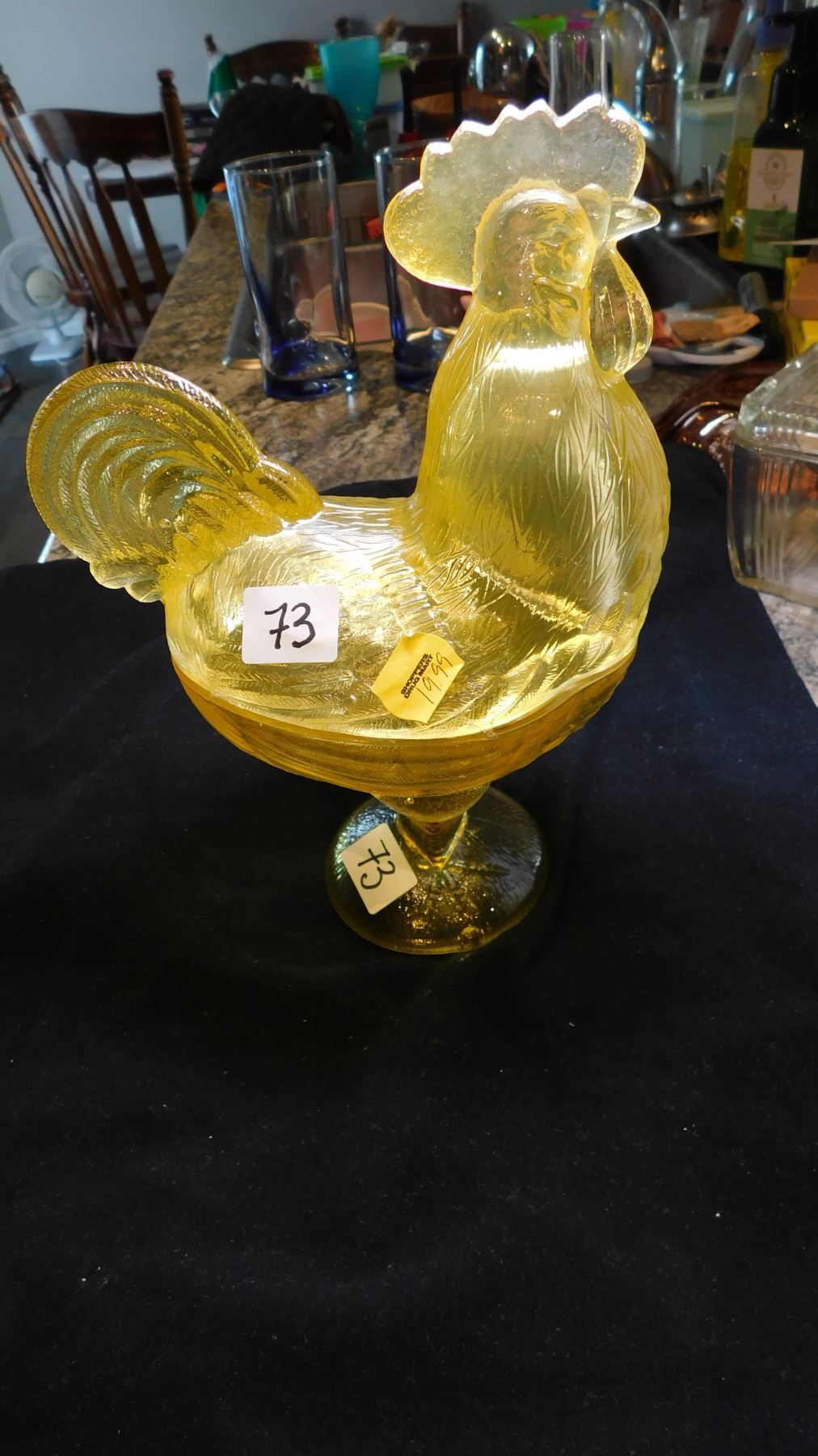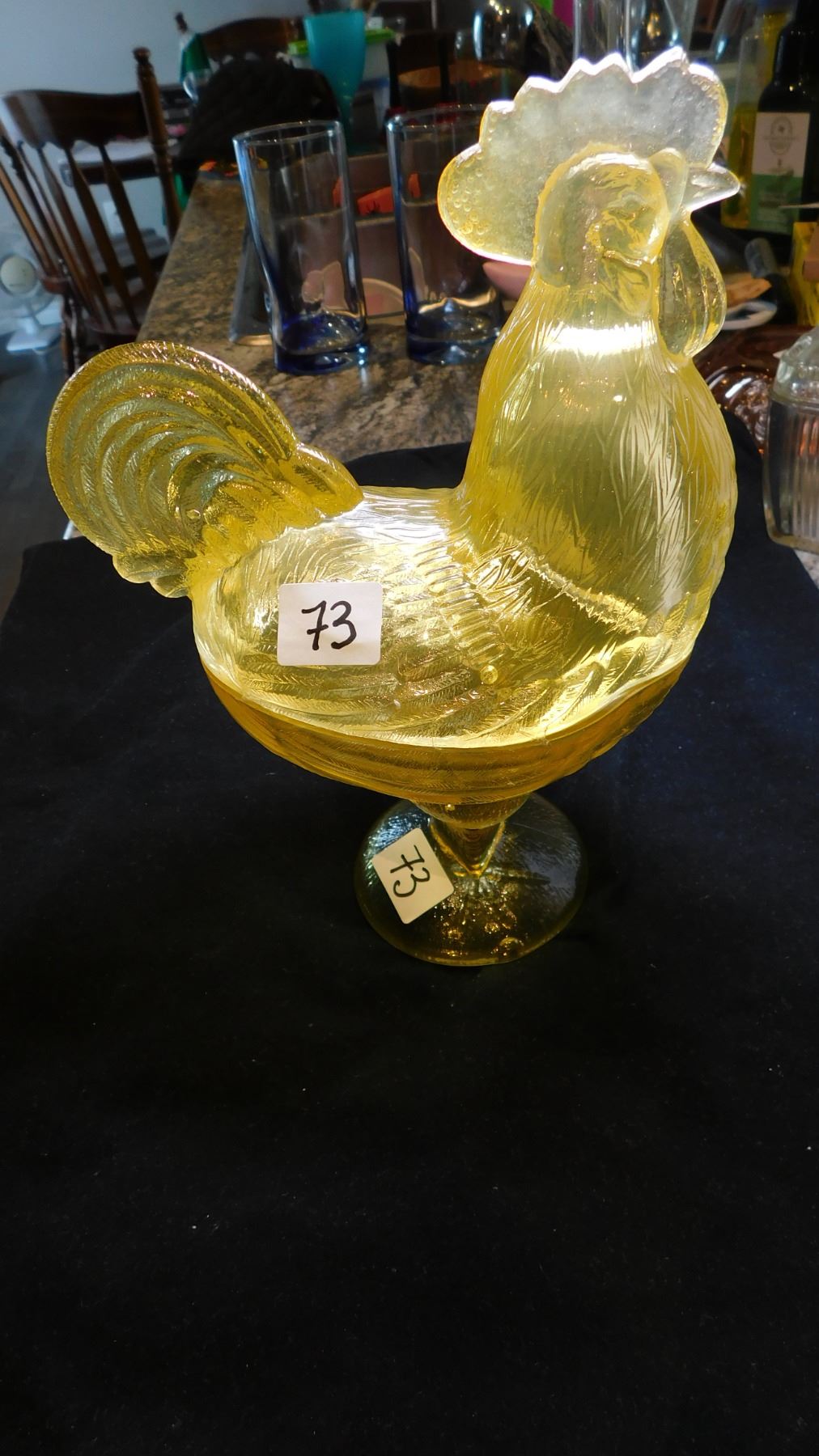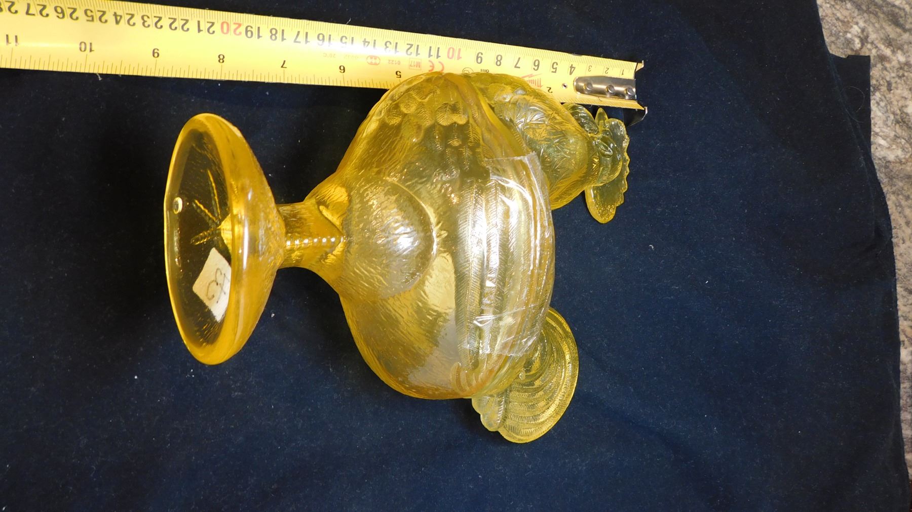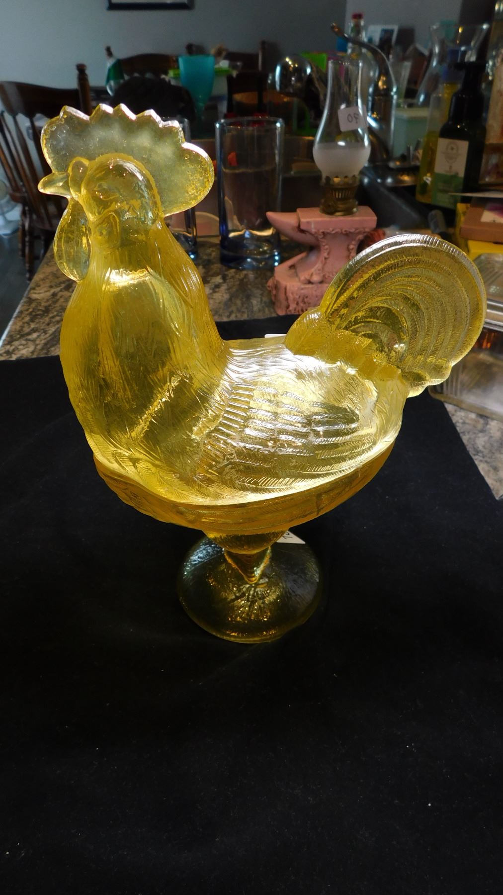 9" TALL YELLOW ROOSTER, COVERED CANDY DISH