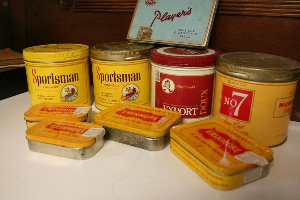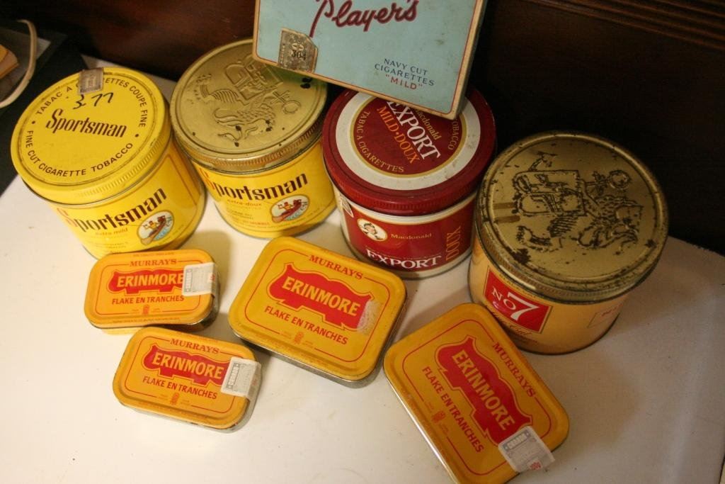 9 TOBACCO AND PIPE TINS – PLAYERS, SPORTMAN, MACDONALD EXPORT, NO7, ERINMORE