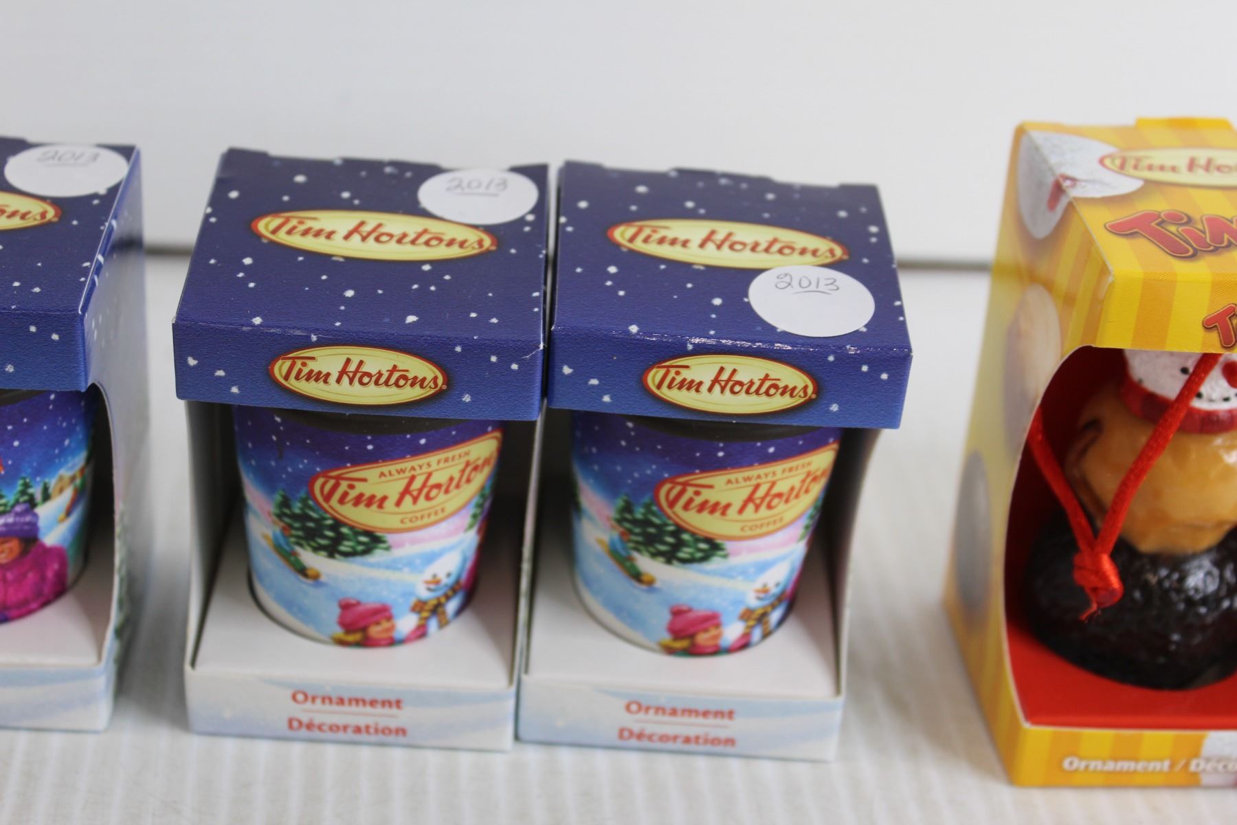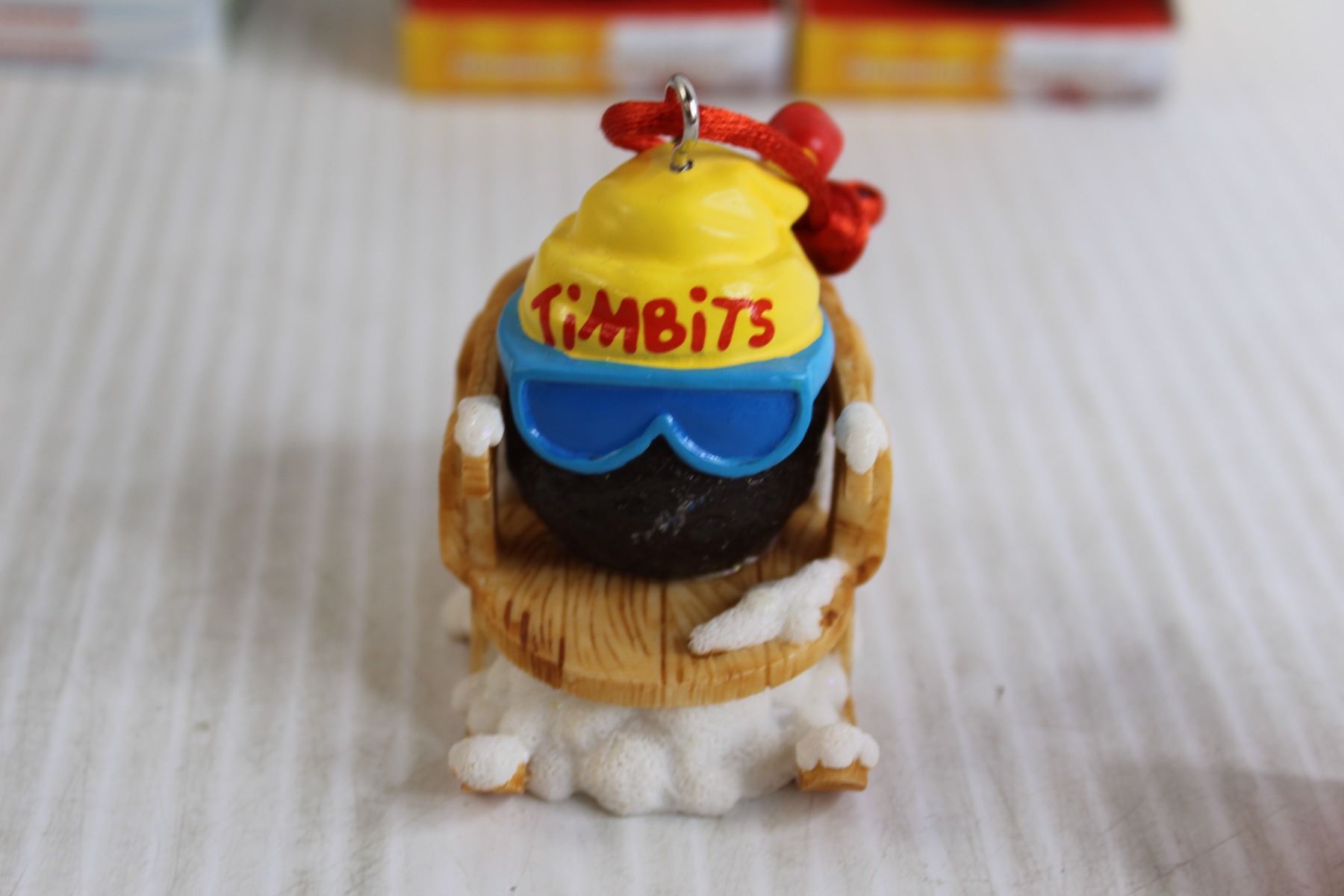 (9) Tim Hortons Ornaments - (4) Coffee Cups, (4) Timbits, Tim Hortons Restaurant