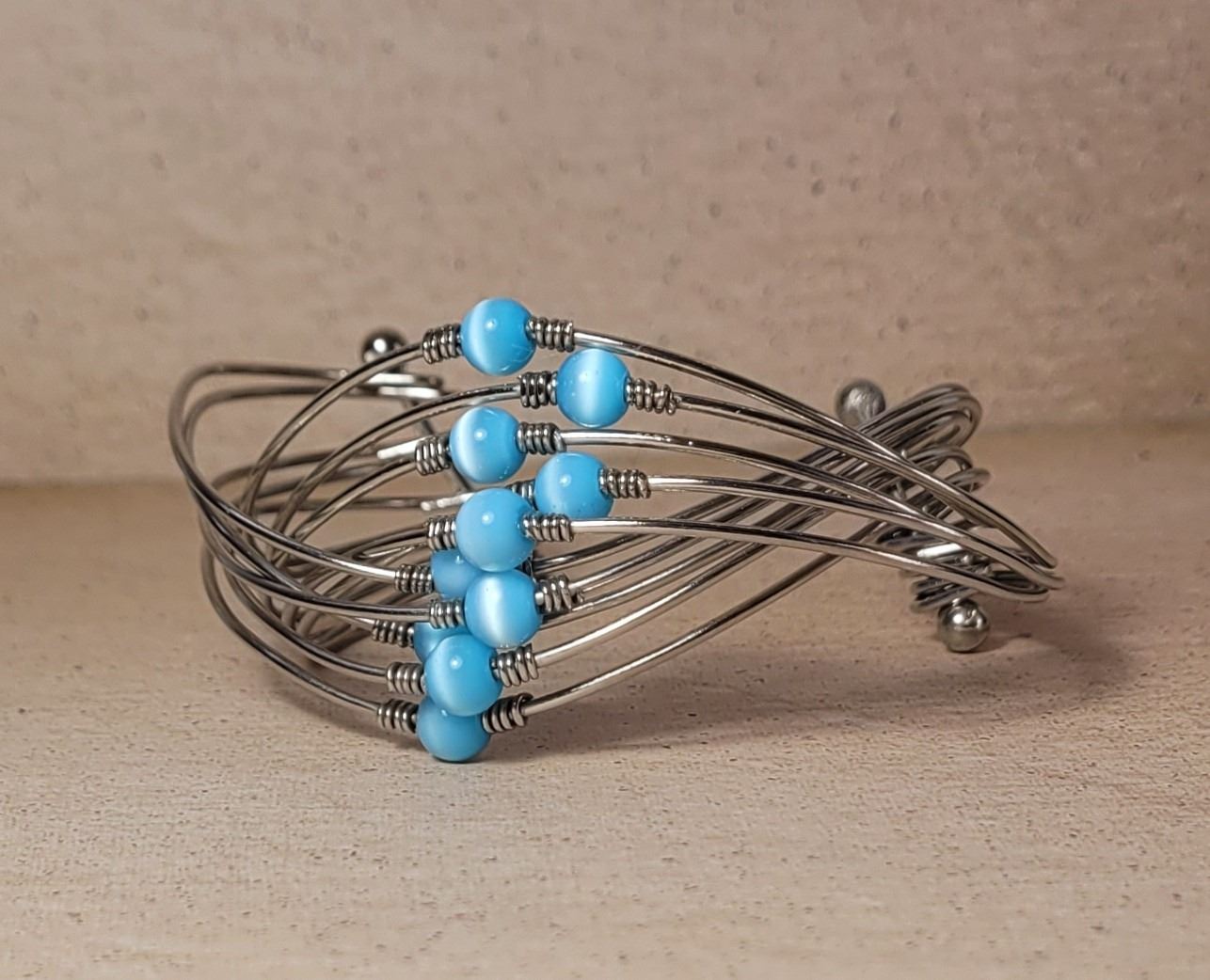 SILVER TONE INTERWOVEN WIRES OPEN BRACELET. JEWELERY