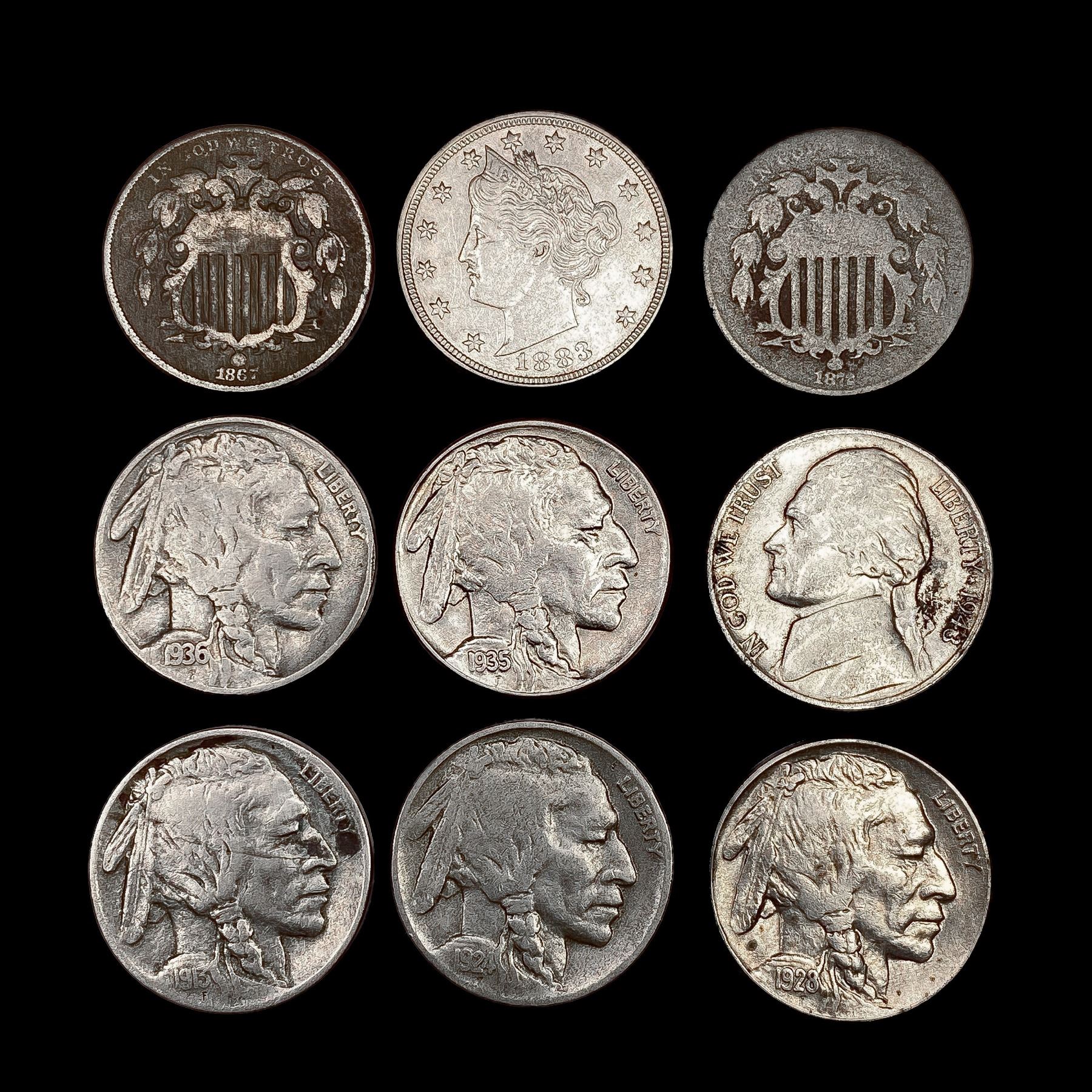 [9] Varied US SILV Nickels (1867, 1872, 1883, 1913