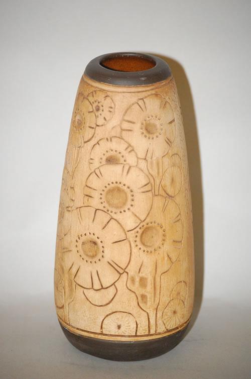 9" WELLER ART POTTERY VASE - WELLER CLAYWOOD PATTERN (SERIES) ART POTTERY VASE-UNMARKED - WEAR & IMPERFECTIONS