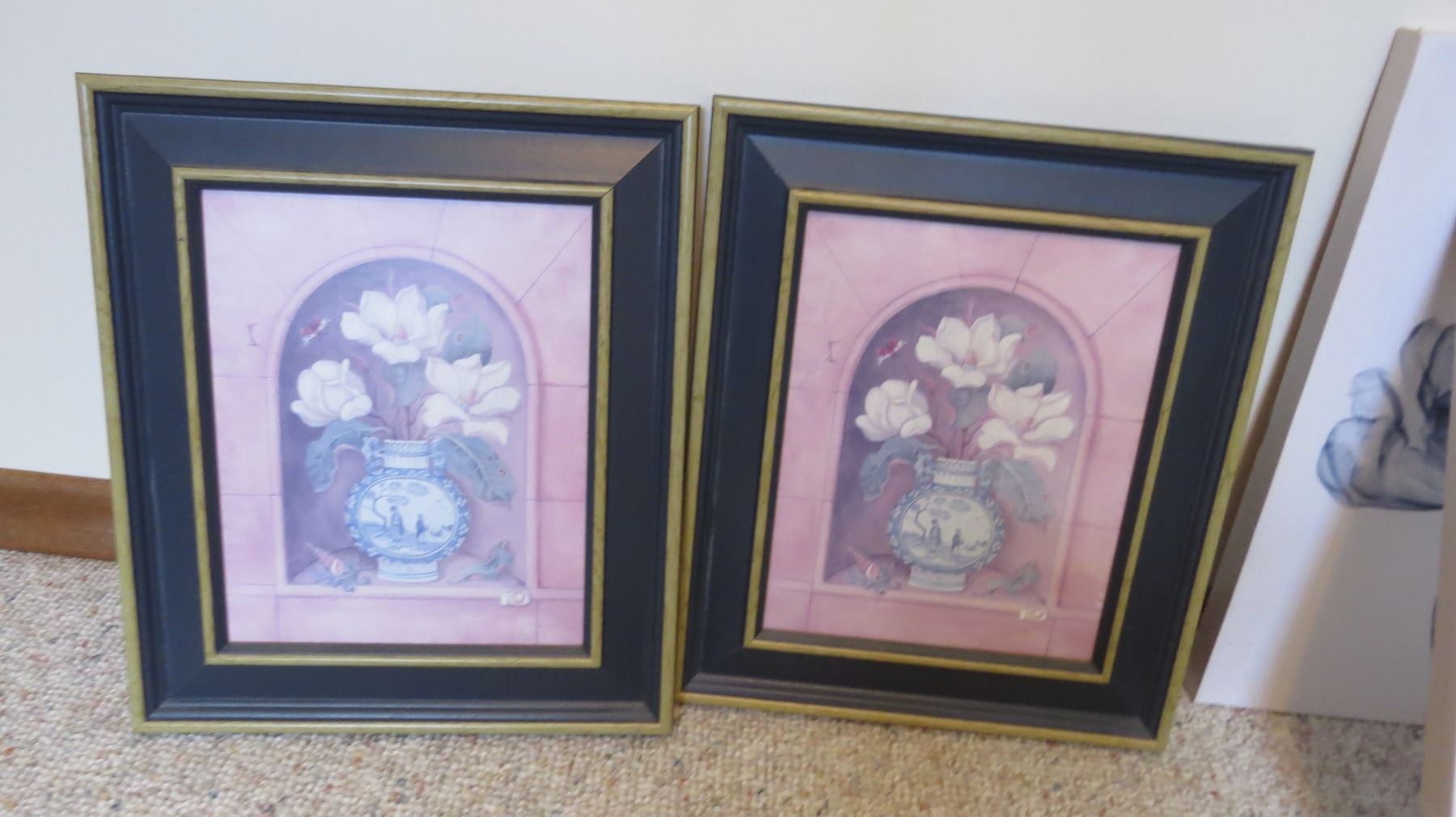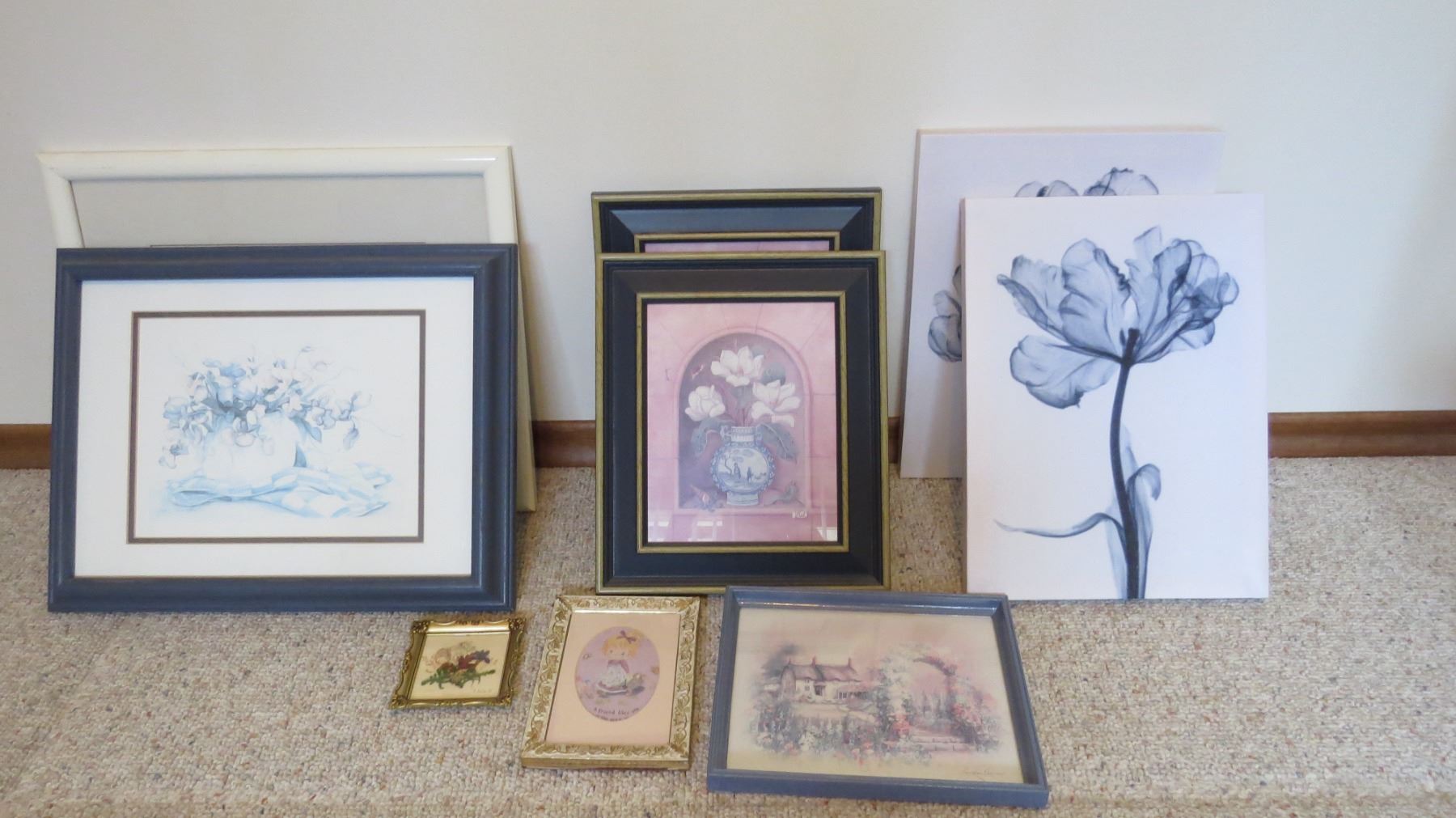 (9) Wall art - flowers in frames