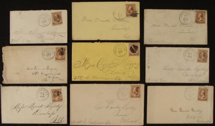 9 Washington 2c Stamps Covers Collection IL, KS 1887