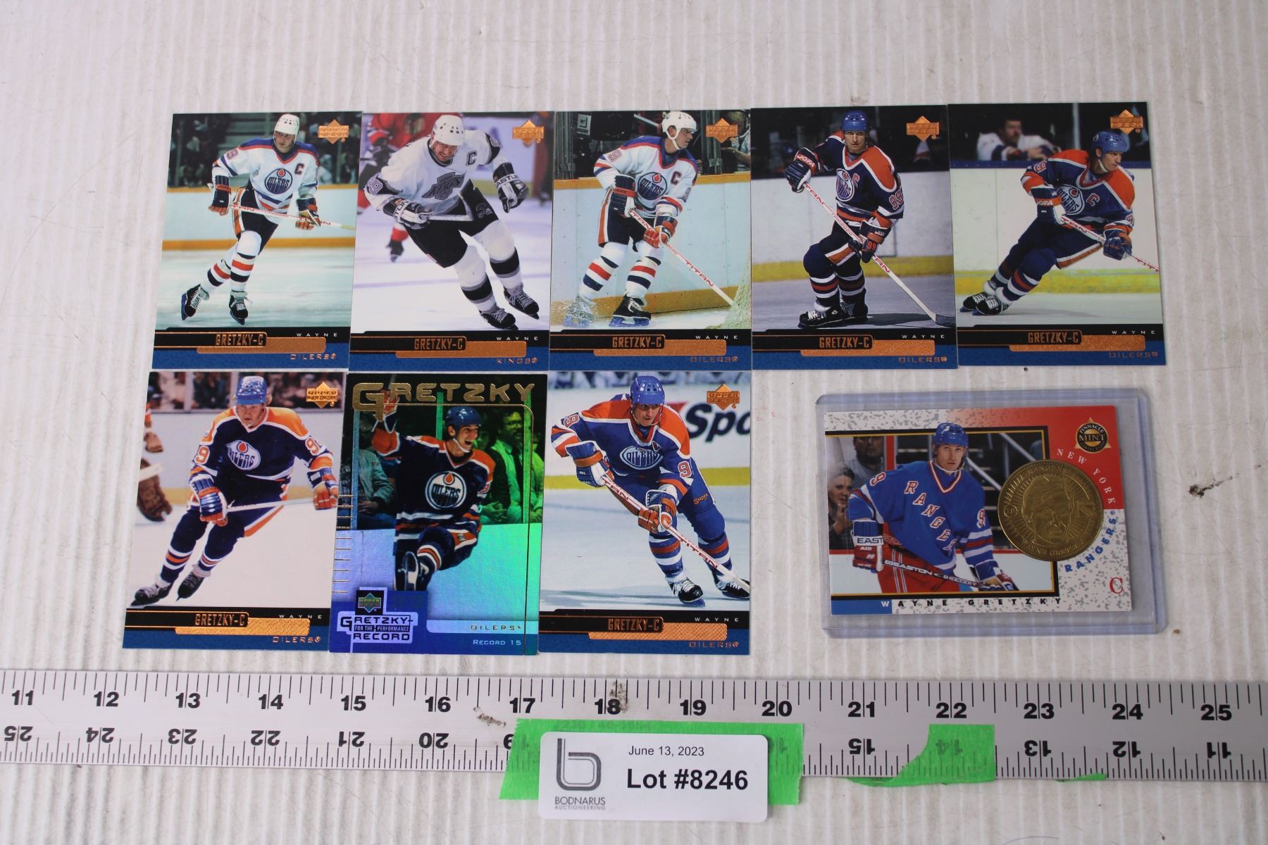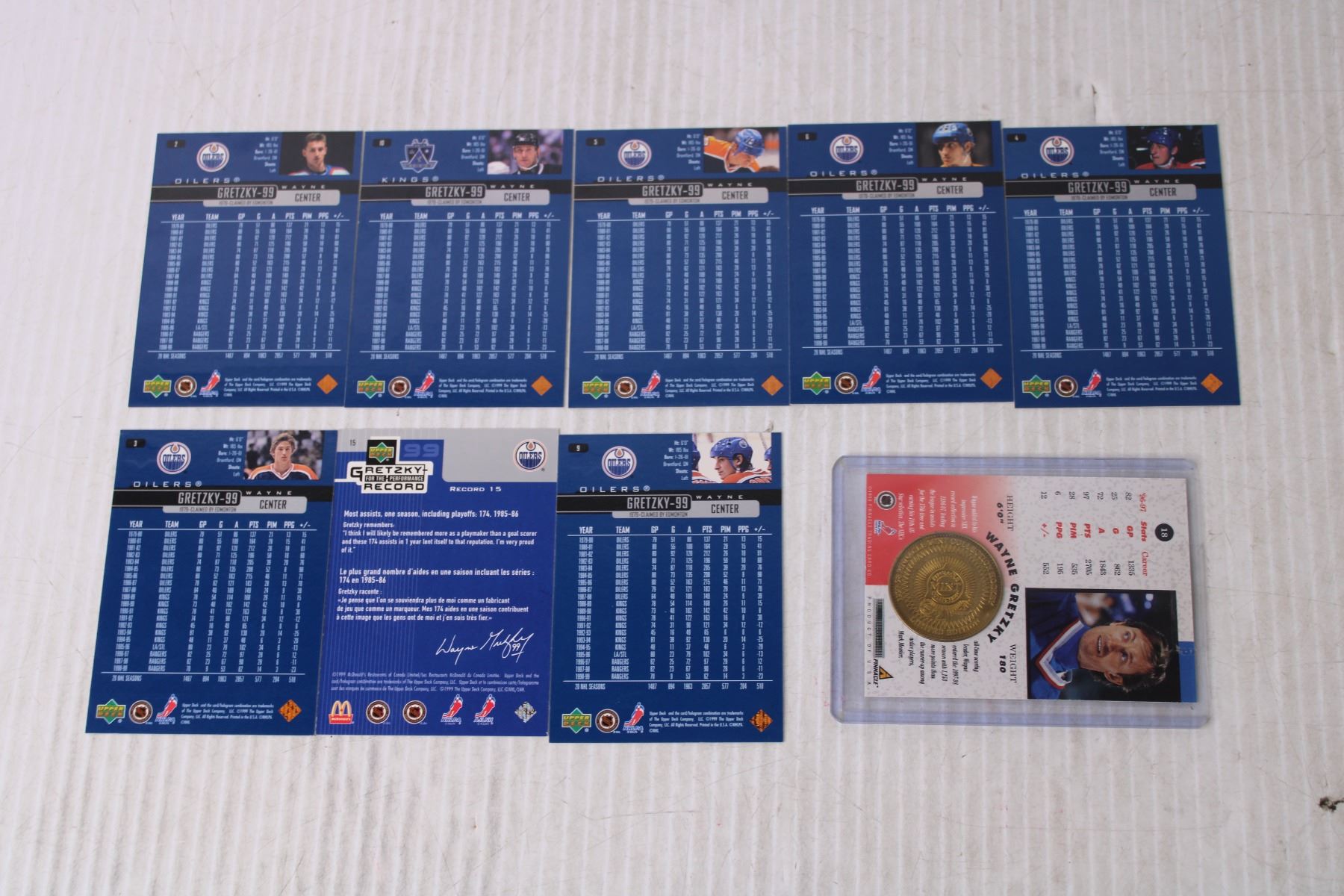 (9) Wayne Gretzky Hockey Trading Cards with Coin