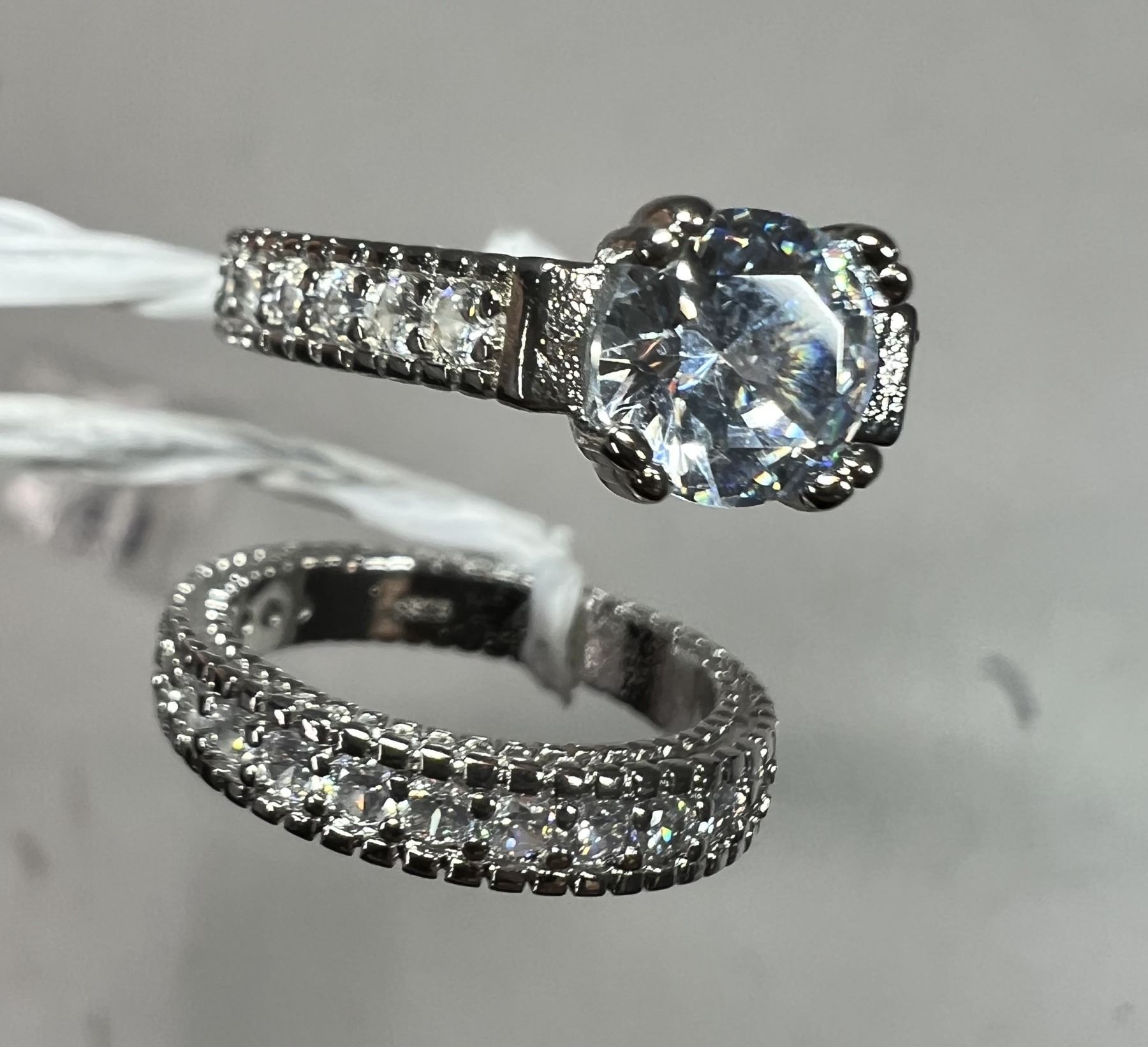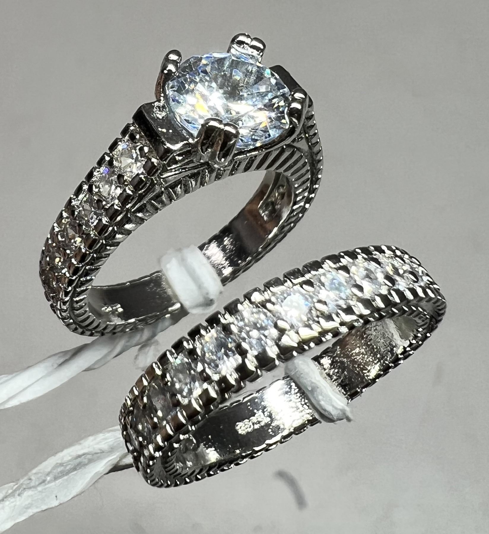 9. Wedding Set, Lab Created, Claw Set, S925 Overlay, Size 5