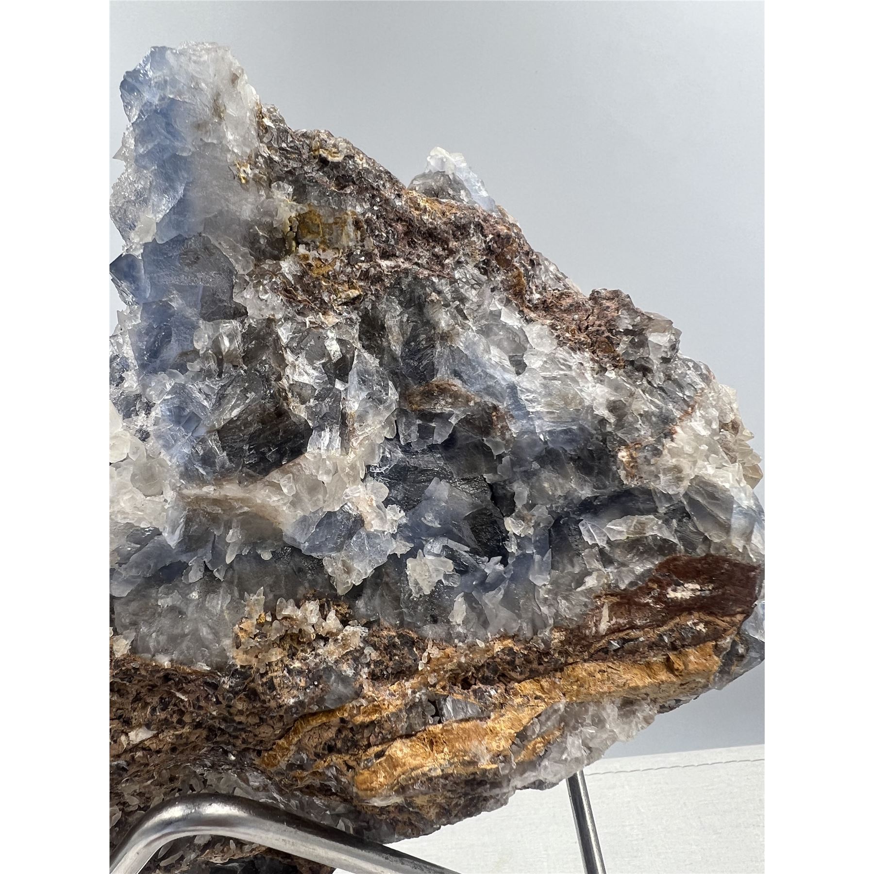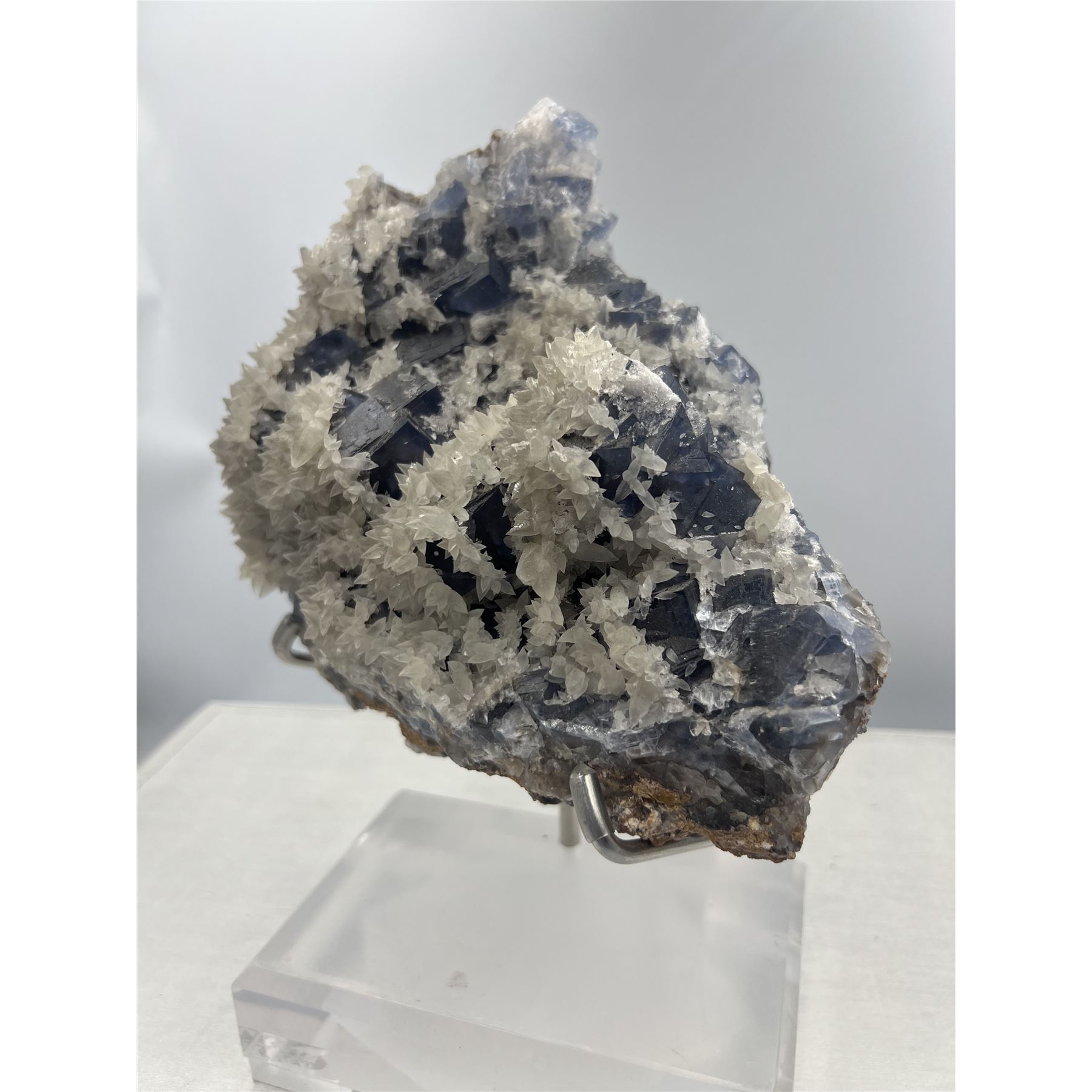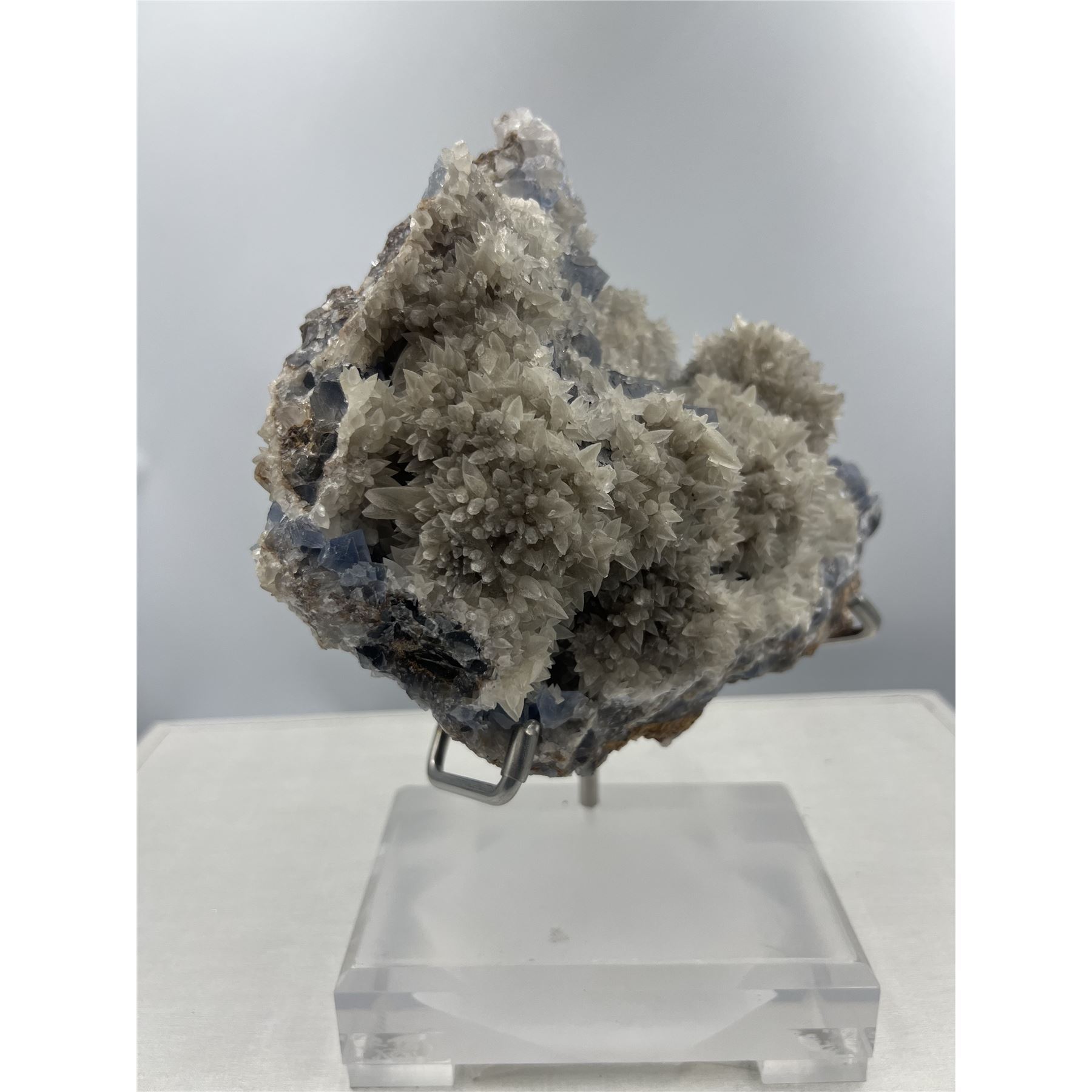 9 X 11 INCH FLUORITE WITH FLOWER CALCITE QUARTZ ON STAND