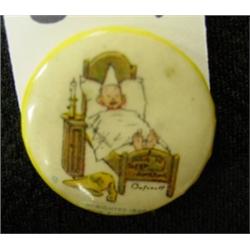 #9 Yellow Kid Comic pinback ad. Outcault for High Admiral Cigarettes. Copyright 1896. Says "I have to sleep sometime." Signed Outcault. Condition: Very Good