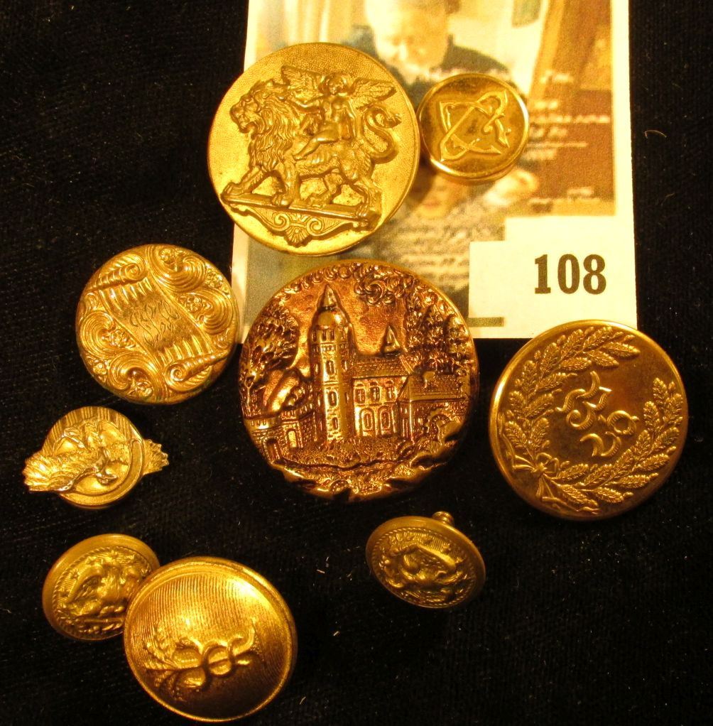 (9) assorted brass buttons, 19th & 20th century, some quite ornate