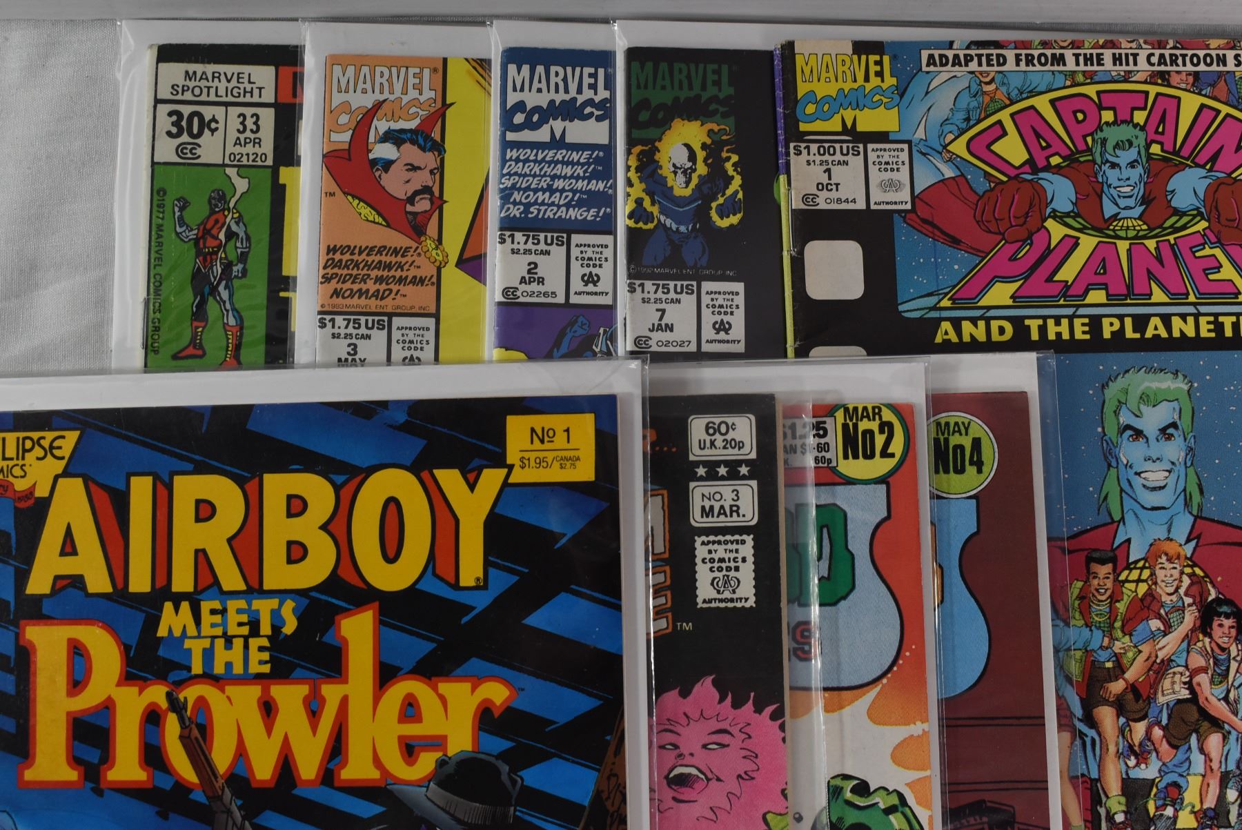 (9) assorted comics, DC + Marvel, Captain Planet 1st issue