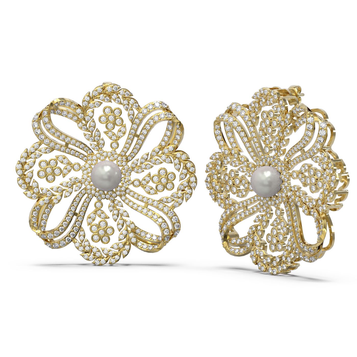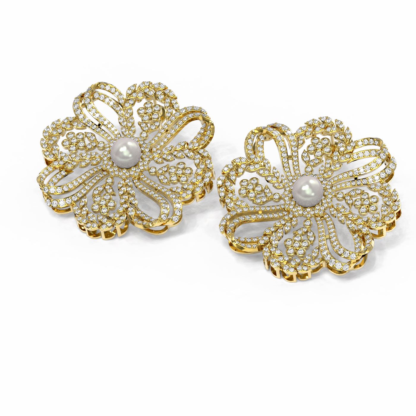 REF-801M8G - SKU: 54910 ---- 9 ctw Diamond & Pearl Earrings 18K Yellow Gold