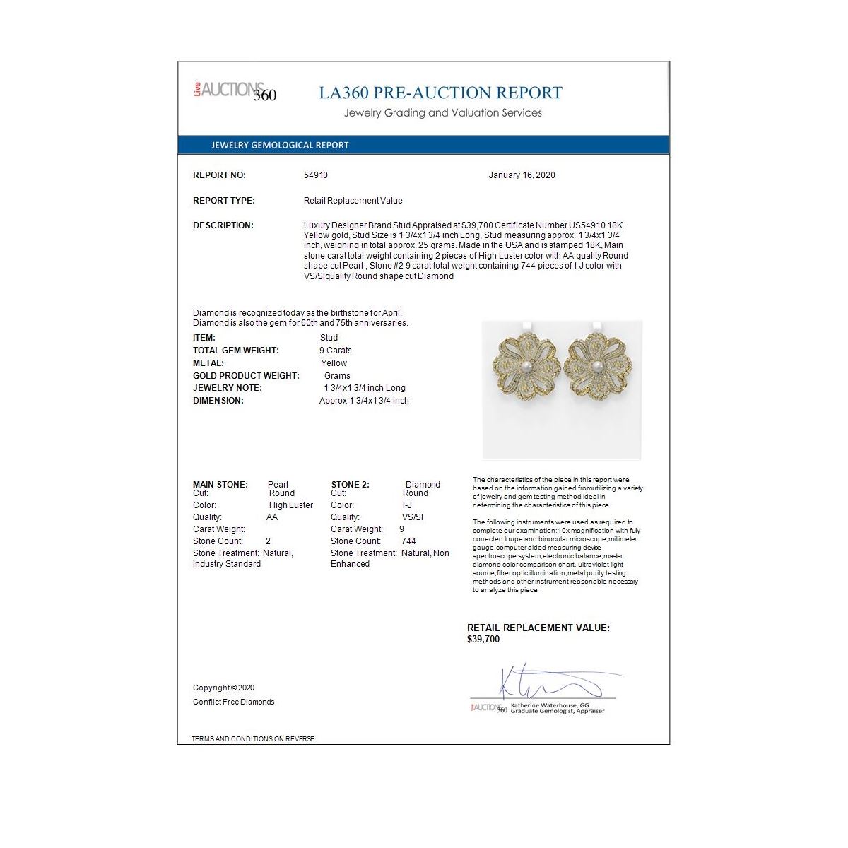 All sales are final, placing a bid is a legally binding obligation. All lots are sold as is, where is, with all the faults, imperfections, omissions and errors in the written description, estimates, appraisals, graphics and photography. USJL is not responsible for any errors or omissions in the description, graphics or photography provided or in the bidding software. Due diligence to verify the condition and description of a lot is the sole responsibility of the Bidder prior to placing any bid. Returns may only be made with the advance written authorization of USJL and are in USJL's sole discretion to approve. To request a return you must provide a written request fully explaining the basis for the return no later than 4 days after your receipt of the lot. Under no circumstances will any amounts other than the winning bid amount be refunded. A restocking charge of 19% of the full invoice amount may apply in USJL 's sole discretion. Any allowed returns must be received in exactly the same condition as when originally shipped to Buyer, or they will be returned to buyer at Buyer's cost. Any unauthorized returns will be refused. DELIVERY REFUSAL OF ITEMS SHIPPED BY US JEWELRY LIQUIDATION TO THE BIDDER CONSTITUTES AN UNAUTHORIZED RETURN IN DIRECT VIOLATION OF THESE GENERAL TERMS AND CONDITIONS.