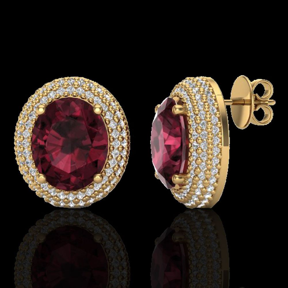 REF-153F5M - SKU: 20227 ---- 9 ctw Garnet & Micro Pave VS/SI Diamond Earrings 18k Yellow Gold