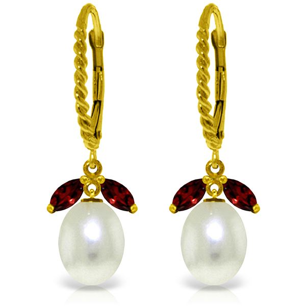 Genuine 14K Yellow Gold 9 ctw Garnet & Pearl Earrings