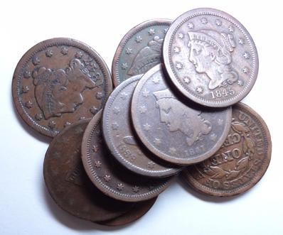 9 large pennys avg fine;1817-38-41-2 45-2 47-51-54
