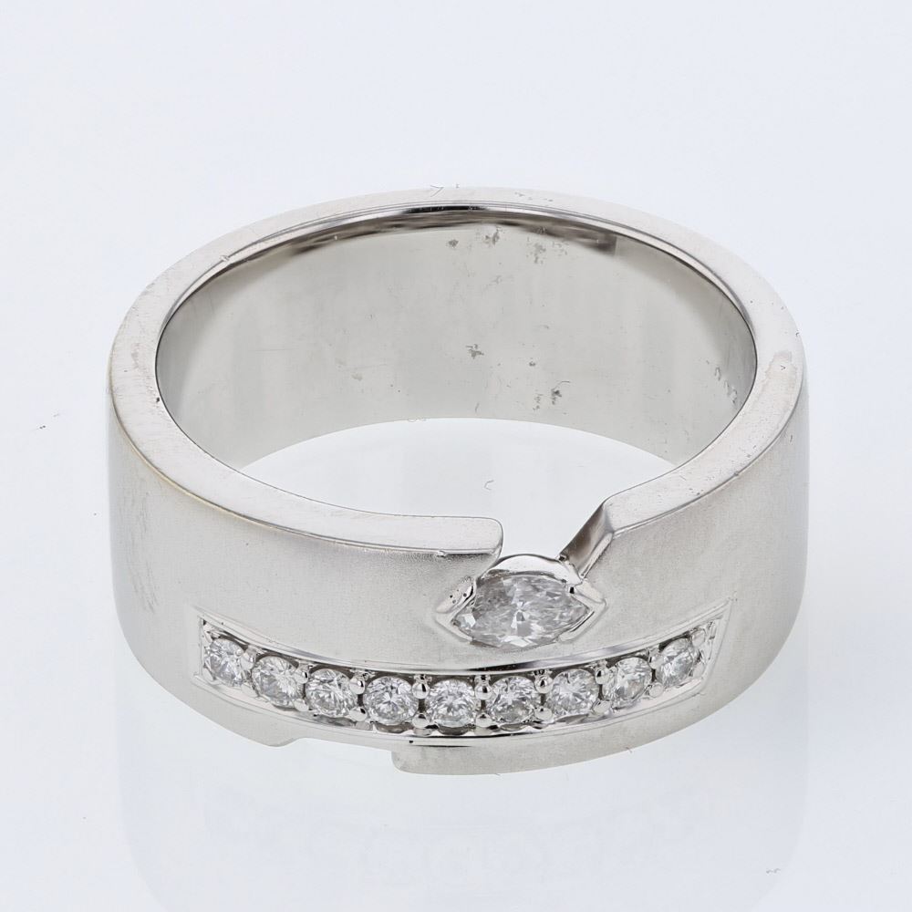 9-stone Channel-set w/ 1 Marquise Diamond Ring in 18K White Gold