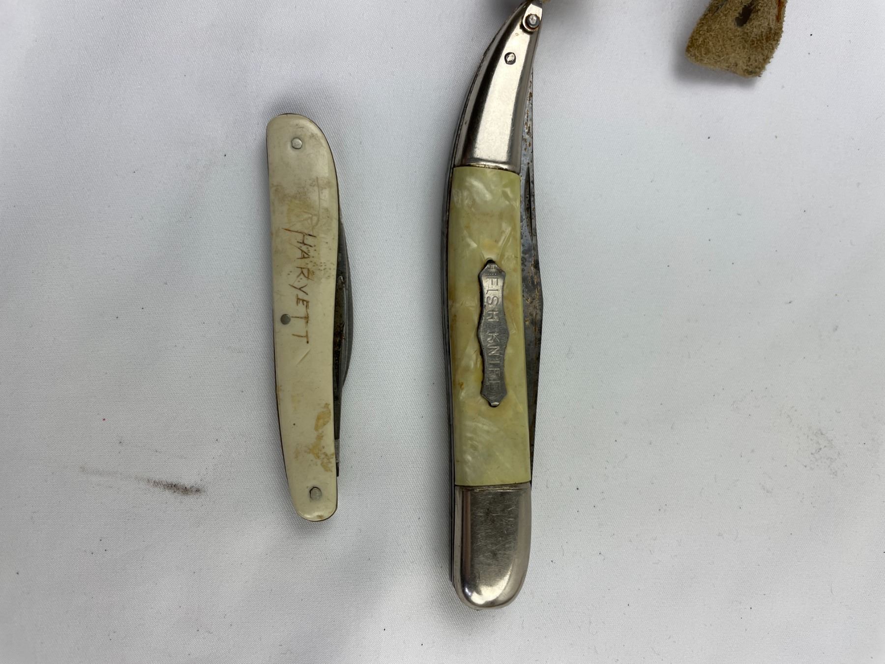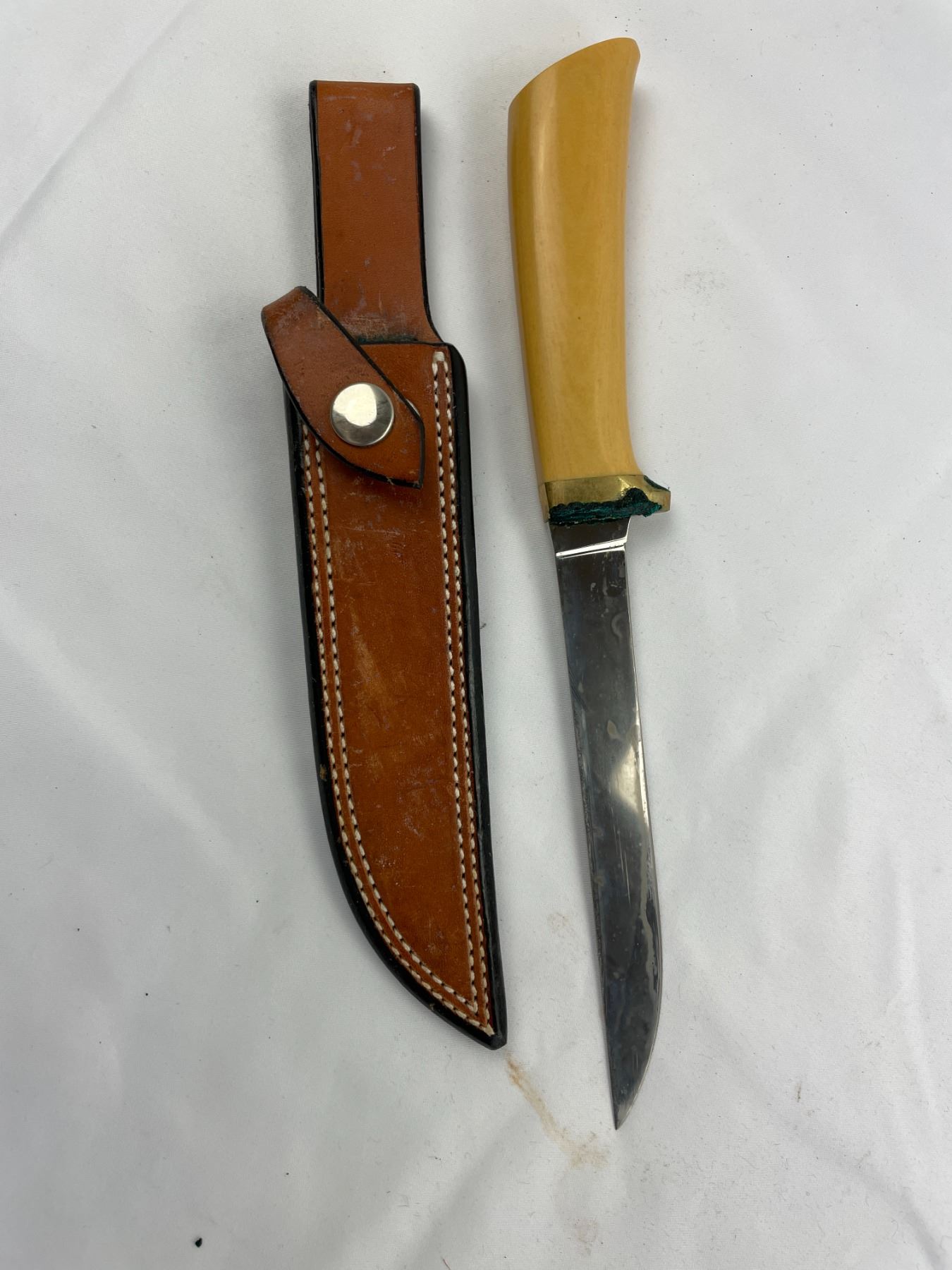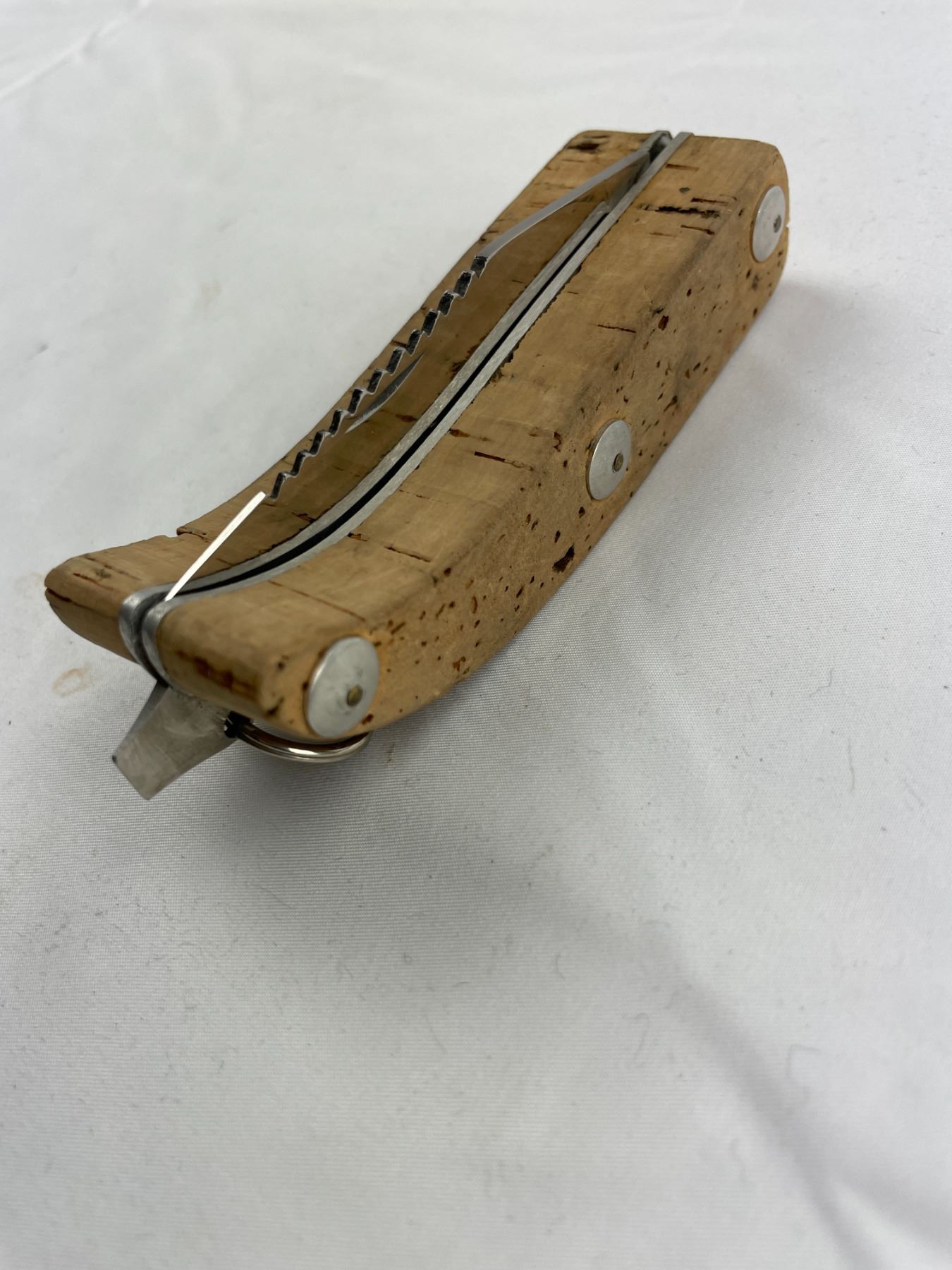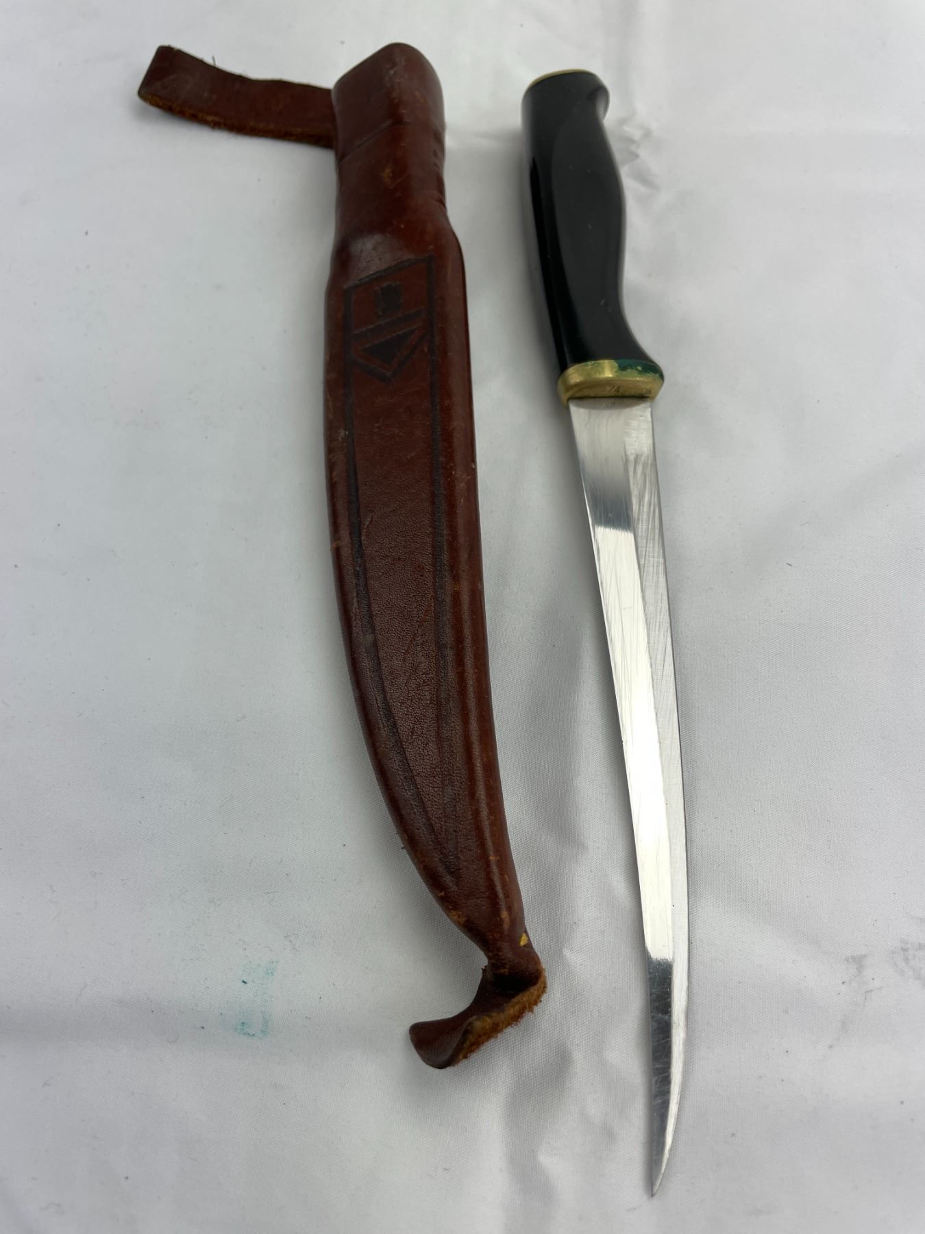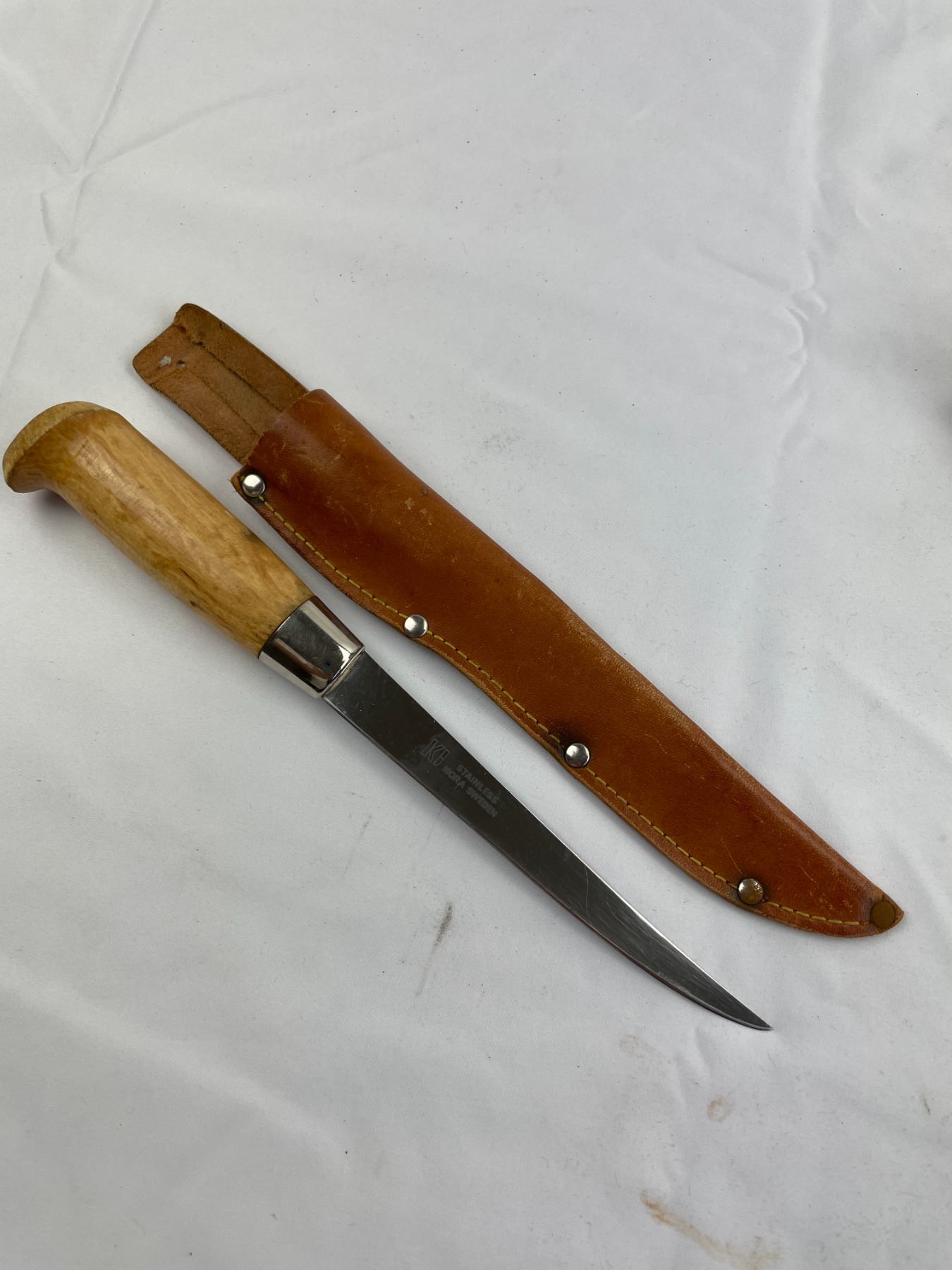 Includes 1 leatherman tool, 8 various knives and 1 sharpening stone.