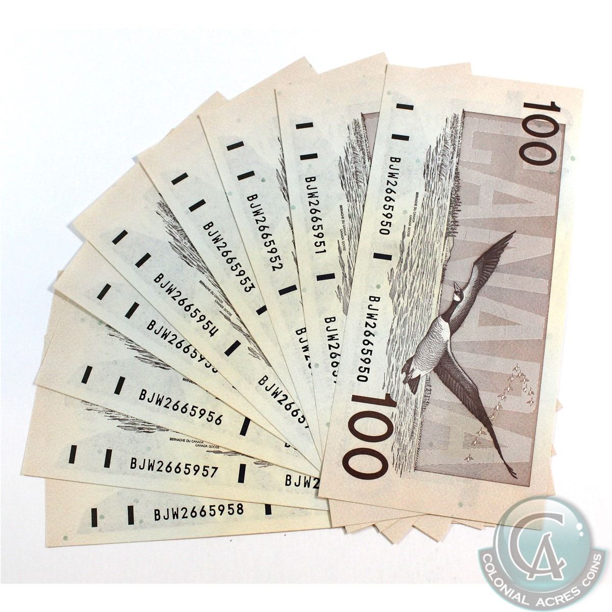 9 x 1988 $100.00 Notes with Knight-Dodge Signatures and Consecutive Serial Numbers all in UNC Condition. 9 pcs.