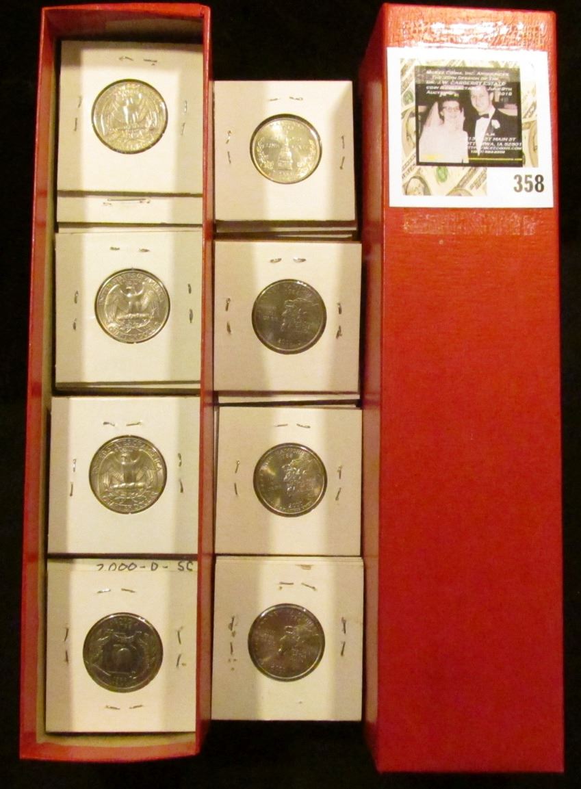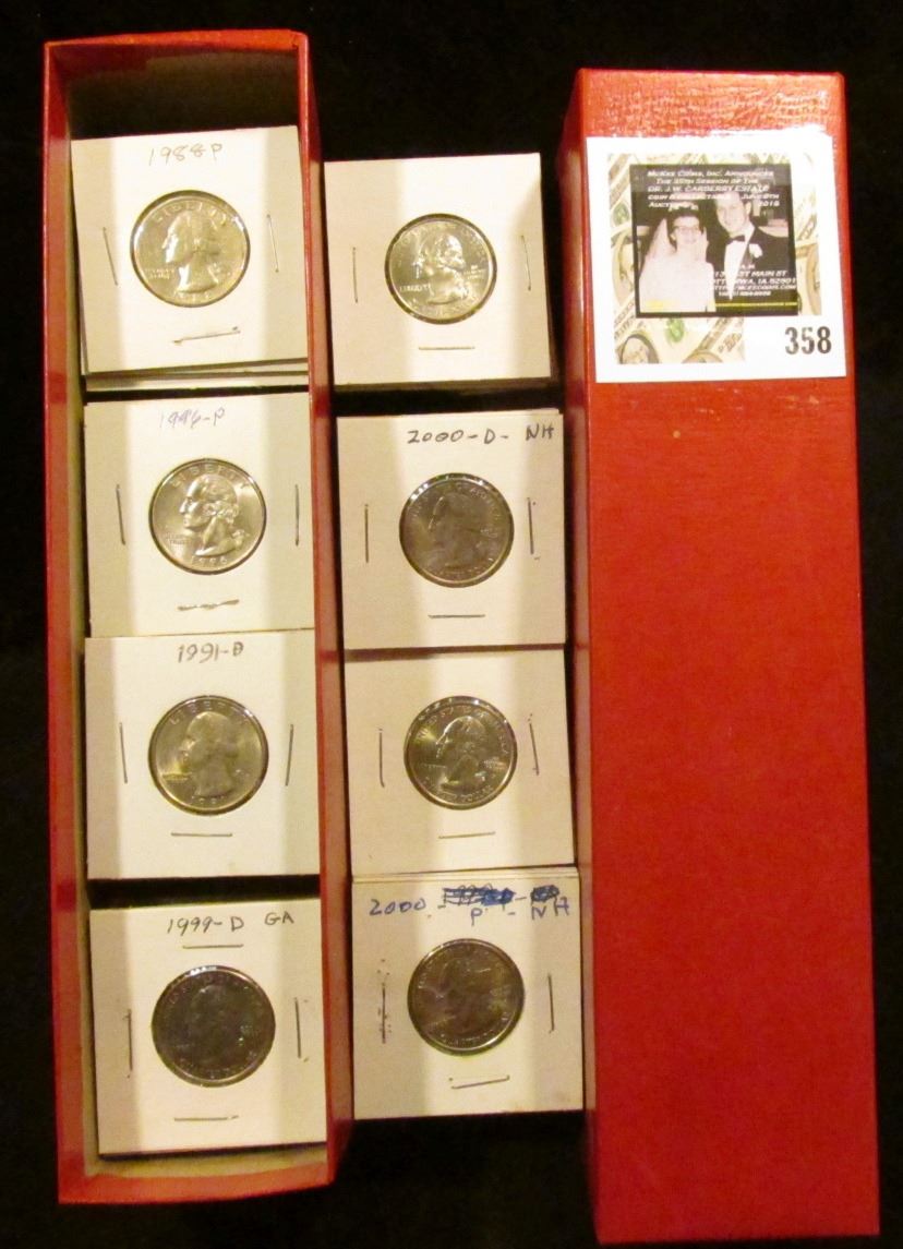 9" x 2" x 2" Stock box containing 83 various non-silver Washington Quarters in carded holders. ($20.75 face value).