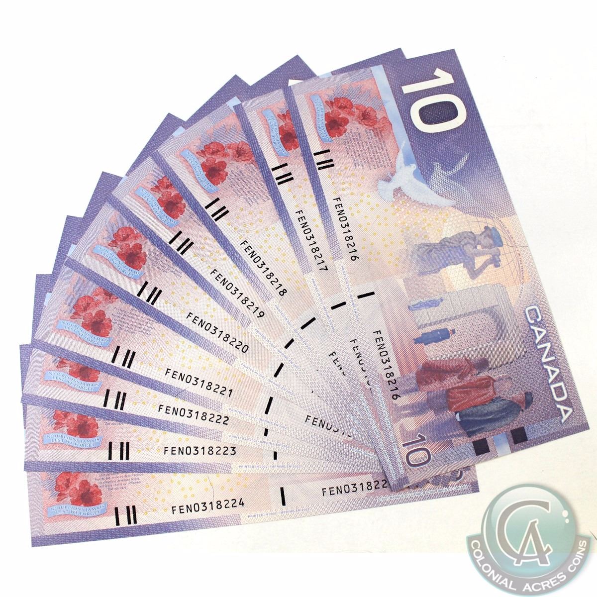9 x 2001 Short run $10.00 Notes with Prefix FEN and Consecutive Serial Numbers. 9 pcs