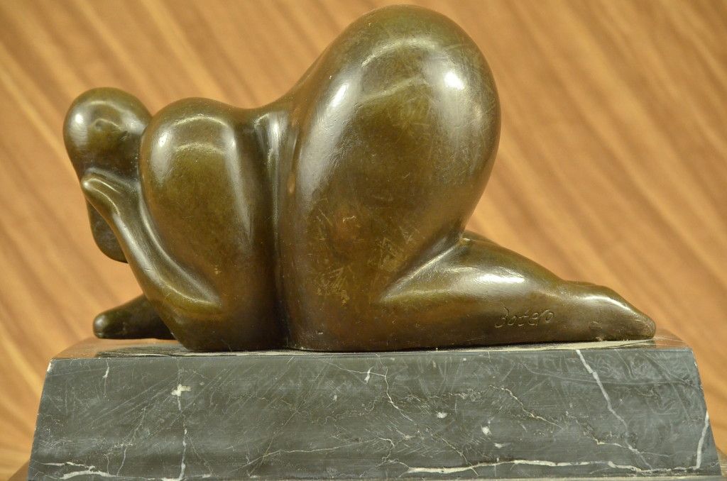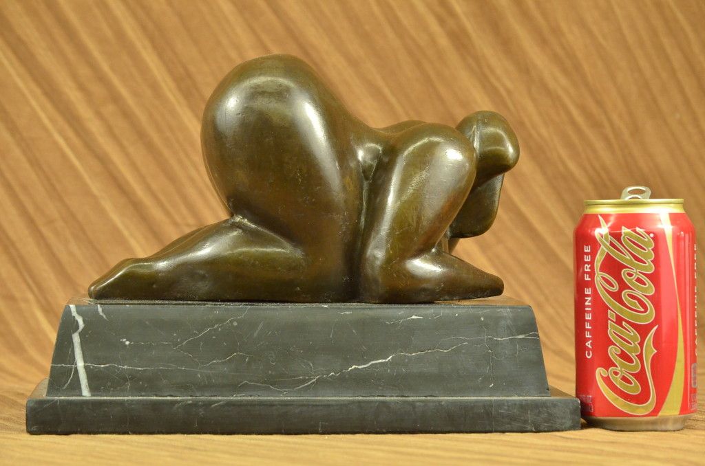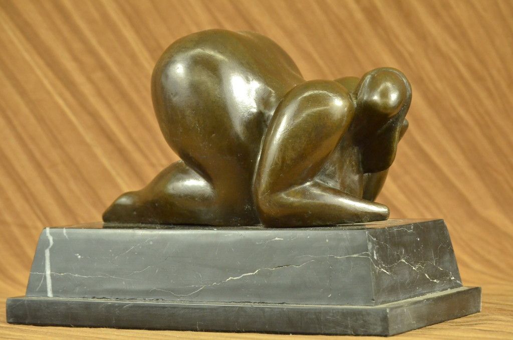 11XNFT01280 The Curvy Nude Woman Bends Forward Onto Her Knees, With Her Head Titled Toward The Ground. The Composition Recalls The Classical Sense Yet Adopts A Modern Abstract Flair That Gives Her Body An Added Emphasis On Her Curvaceousness. She Seems To Coyly Look Down As If Blushing Due To The Gushing Admiration She Gets From The Beholder Witnessing Her Body. The Bronze Sculpture Was Captured Using The Ancient Method Of Lost-Wax Casting And Finished With A Brown Patina Stain For Preservation. She Is Mounted Upon A Black Marble Base With The Artist Botero'S Signature. Fernando Botero Angulo (Born April 19, 1932) Is A Colombian Figurative Artist, Self-Titled "The Most Colombian Of Colombian Artists" Early On. He Came To National Prominence When He Won The First Prize At The Salón De Artistas Colombianos In 1958. Working Most Of The Year In Paris, In The Last Three Decades He Has Achieved International Recognition For His Paintings, Drawings And Sculpture, With Exhibitions Across The World. His Art Is Collected By Major Museums, Corporations And Private Collectors...................SHIPPING USA: $25....HI, ALASKA, CANADA: $79...ALL OTHER COUNTRIES: $189