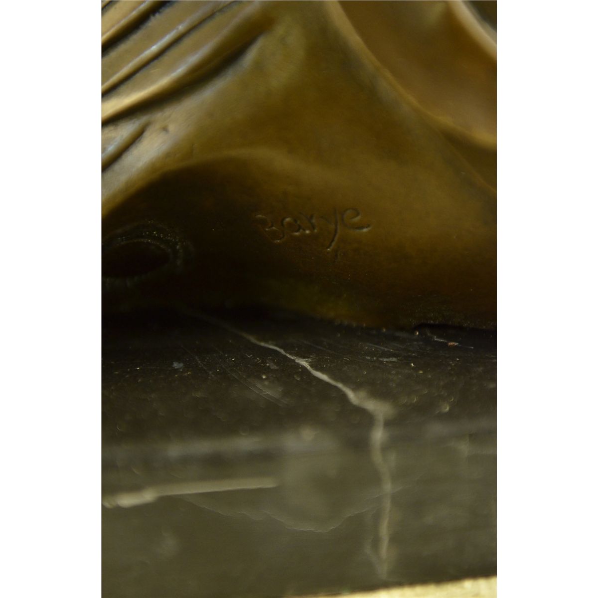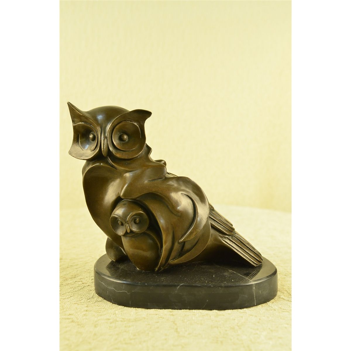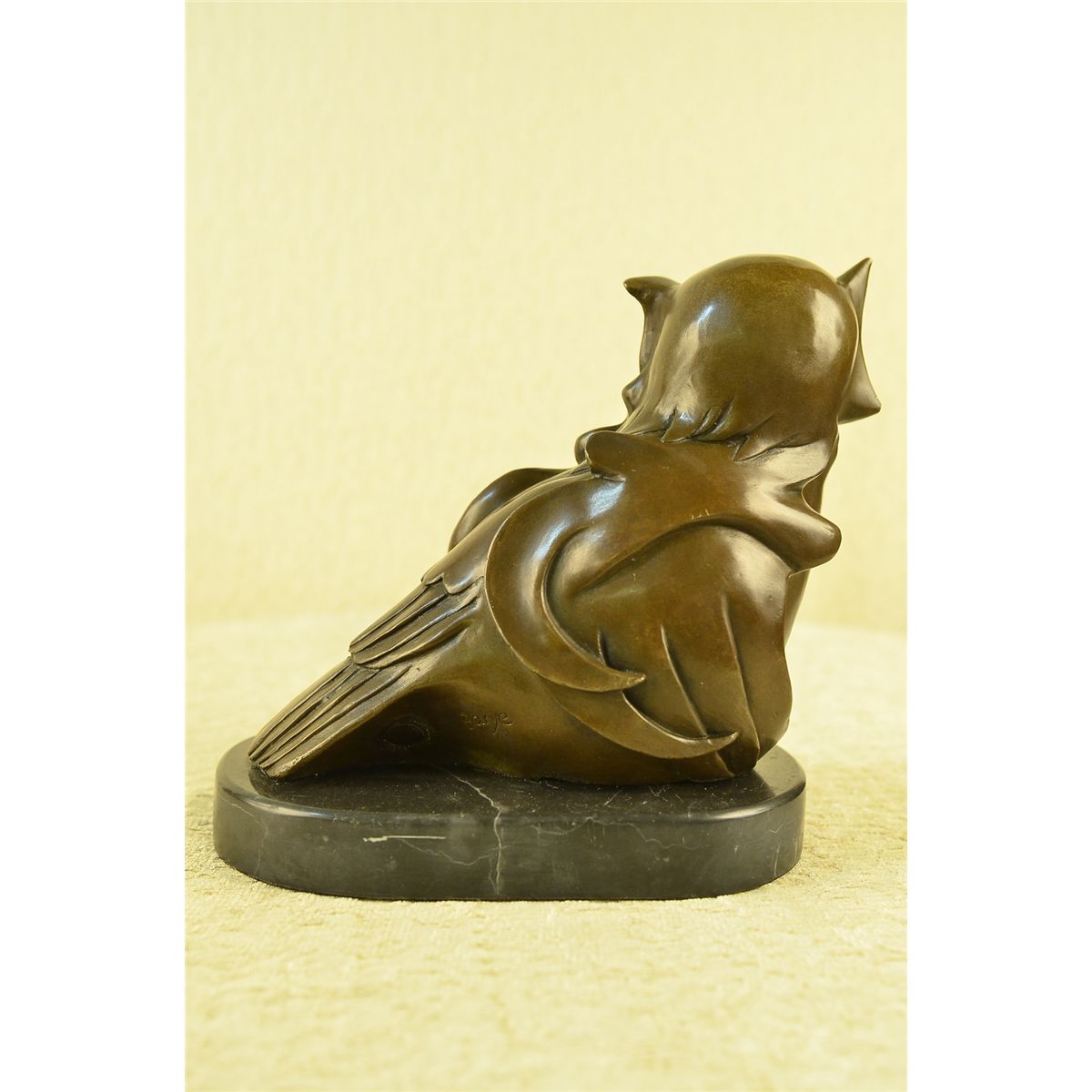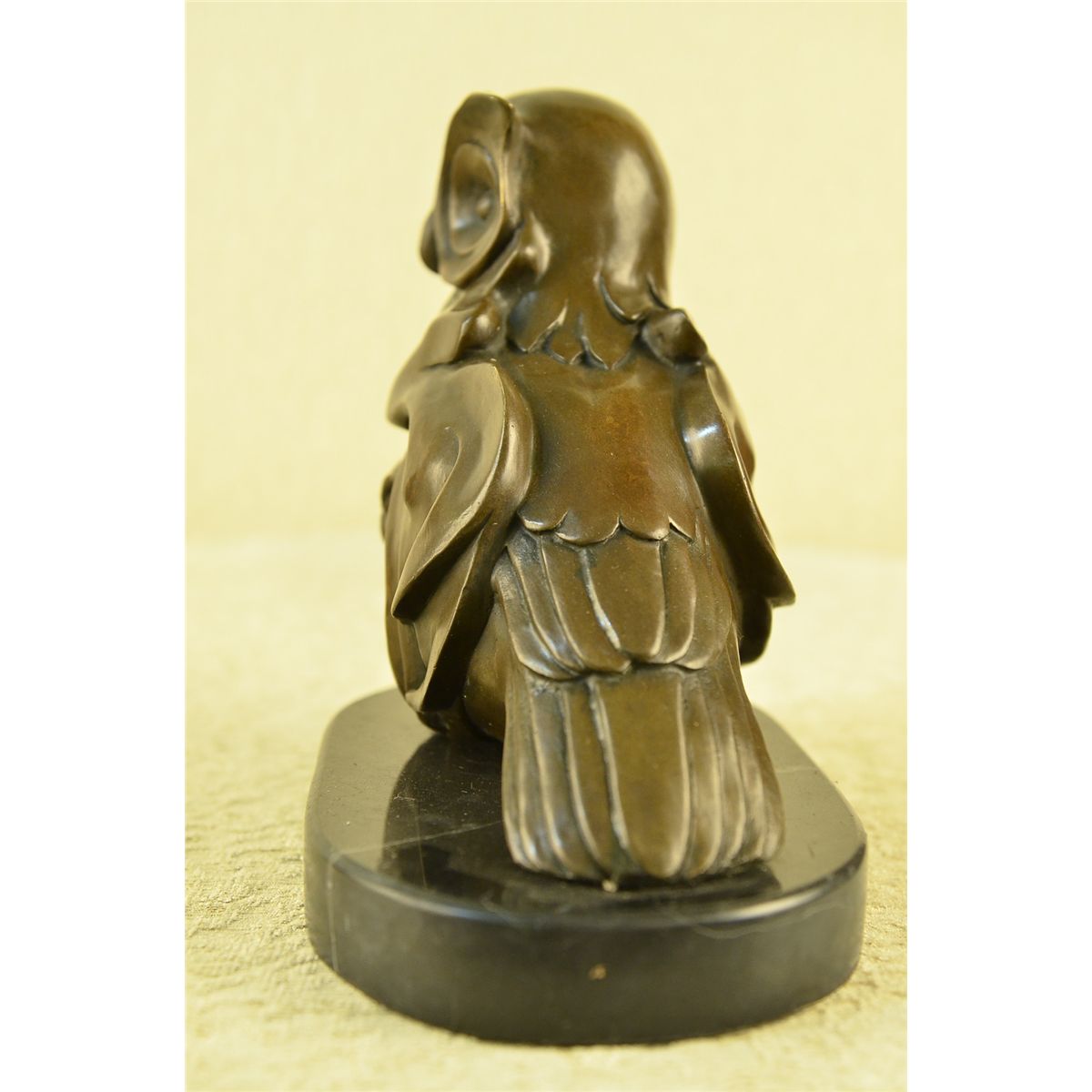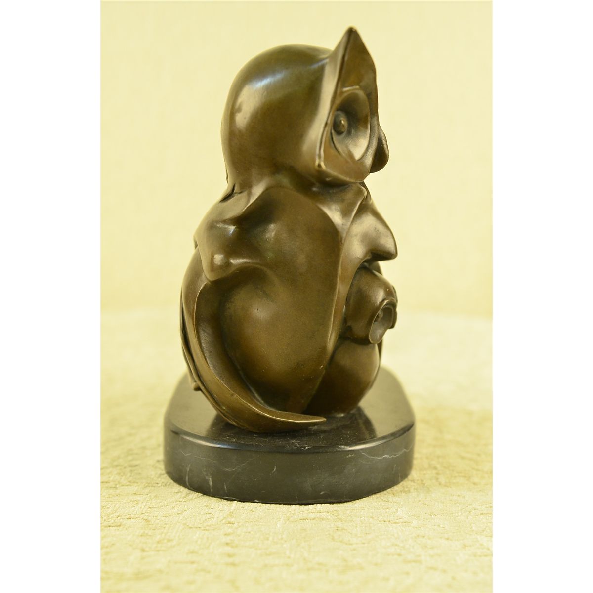 11DW07380 A Quaint Owl Rests Upon His Perch, Looking Out Into The Night Sky. His Innate Ability To Listen Keeps Him Occupied As He Listens To The Sounds Of The Night, Waiting To Hear The Scurry Of A Mouse So That He Can Swoop Down For A Midnight Snack. His Eyes Are Large And His Body Refined By The Intricate Feathers That Outline His Form, Each One Visible From The Next As They Cascade Downwards. Sculpture Is Hand Made Using The “Lost Wax Method” And Made Of 100% Bronze. A Two Toned Brown Patina Is Used And He Rests On A Solid Black Marble Base. Signed Barye...................SHIPPING USA: $20....HI, ALASKA, CANADA: $40...ALL OTHER COUNTRIES: $79