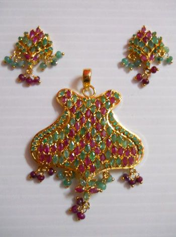 90.50 CTW GOLD PLATED EMERALD AND RUBY PENDANT AND EARR **|**|** 90.50 CTW GOLD PLATED EMERALD AND RUBY PENDANT AND EARRING SET STERLING SILVER ; MSRP: $925
