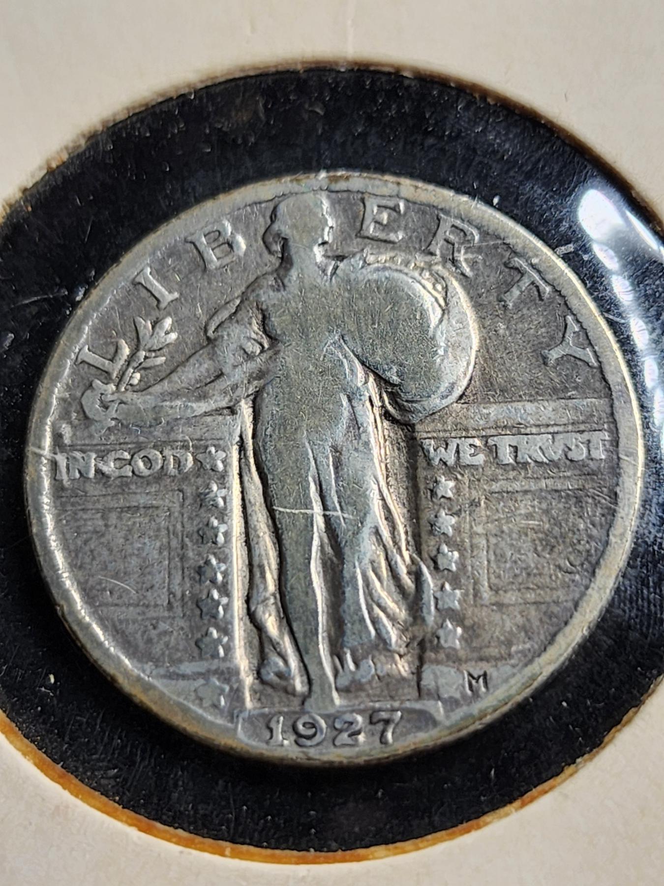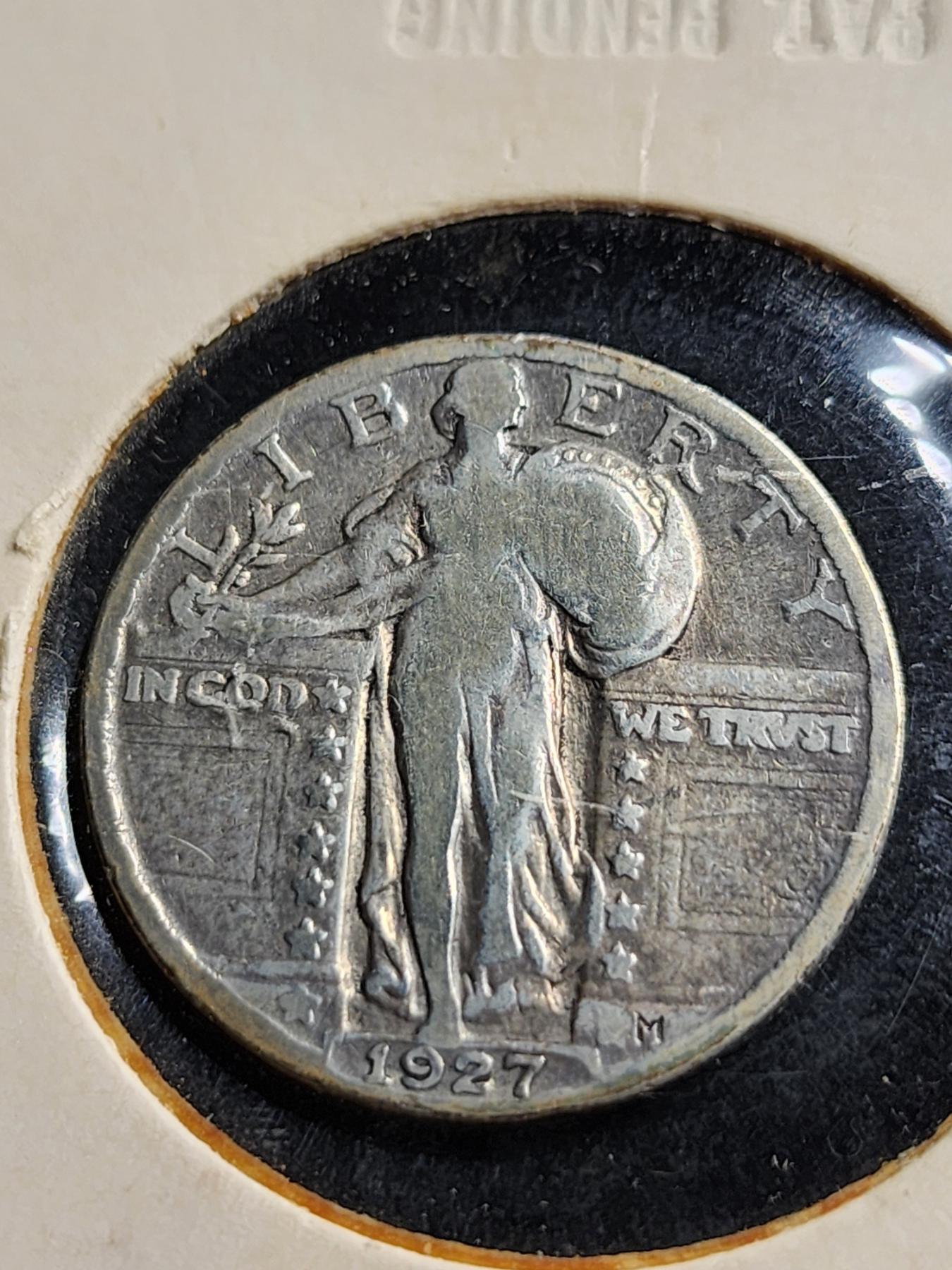 90% Silver 1927 Standing Liberty Quarter Dollar - In Good Condition!