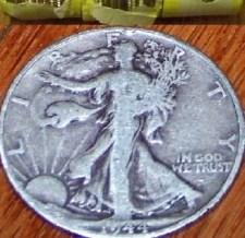 90% Silver Roll of Franklins & Walkers Circ. A roll of 20 coins, 8 Walkers, 10 Franklins, and two 1964 Kennedy halves. A good date mix. This roll contains 7.2 ounces of silver.