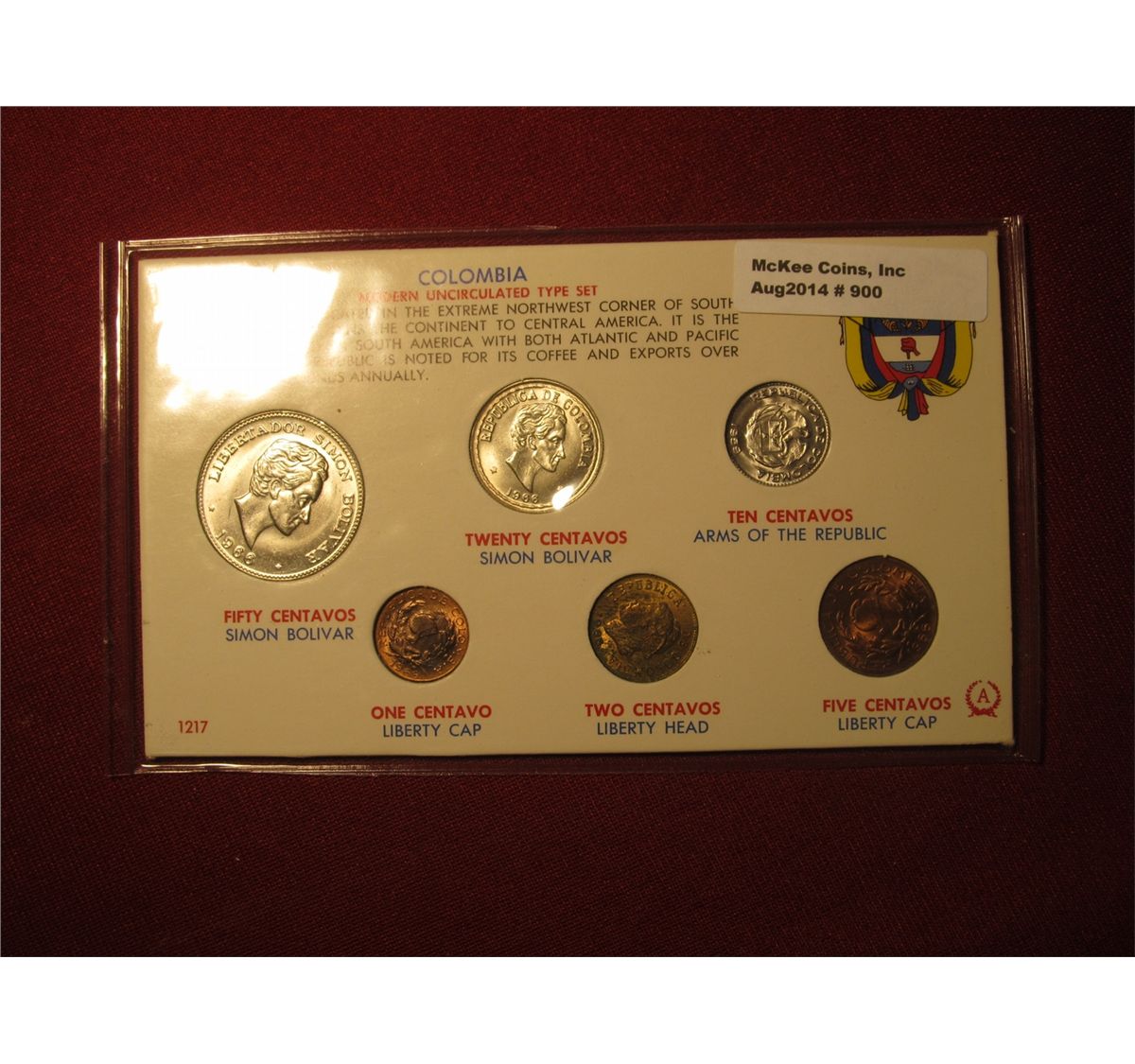 900. Columbia Modern Uncirculated Type Set, 6 coin set, coins are dated 1965-1966
